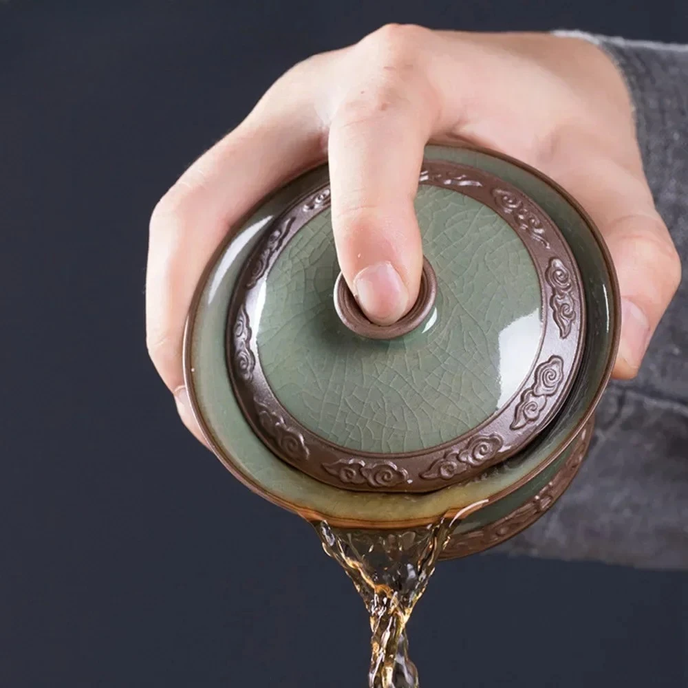 Chinese Ru Kiln Ceramic Gaiwan Handmade Teacup Tea Water Separation Tea Bowl Household Travel Teaware Tea Ceremony Gifts