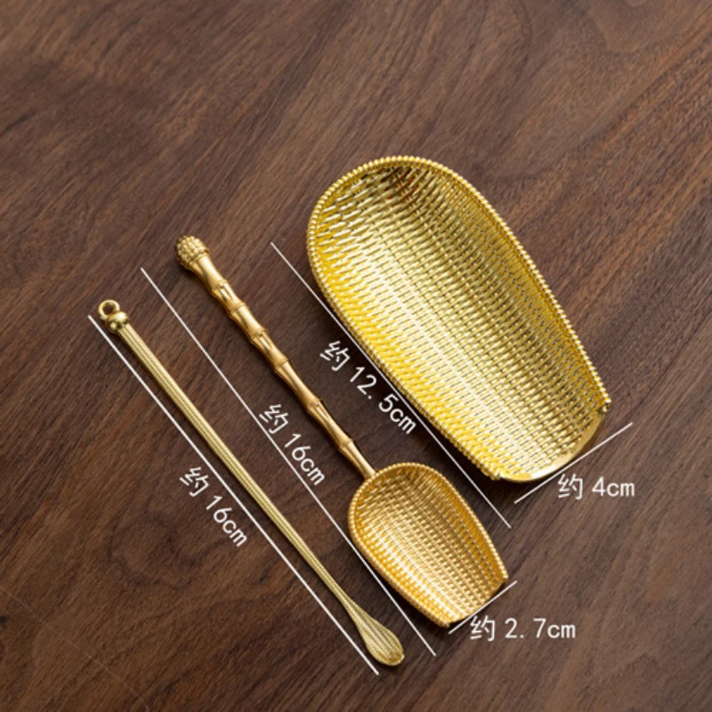 Japanese Hammer Patterned Alloy Tea Scoop Antique Brass Tea Boxes Saucer Chahe Shovel Appreciation Ladle Tea Ceremony Craft Gift