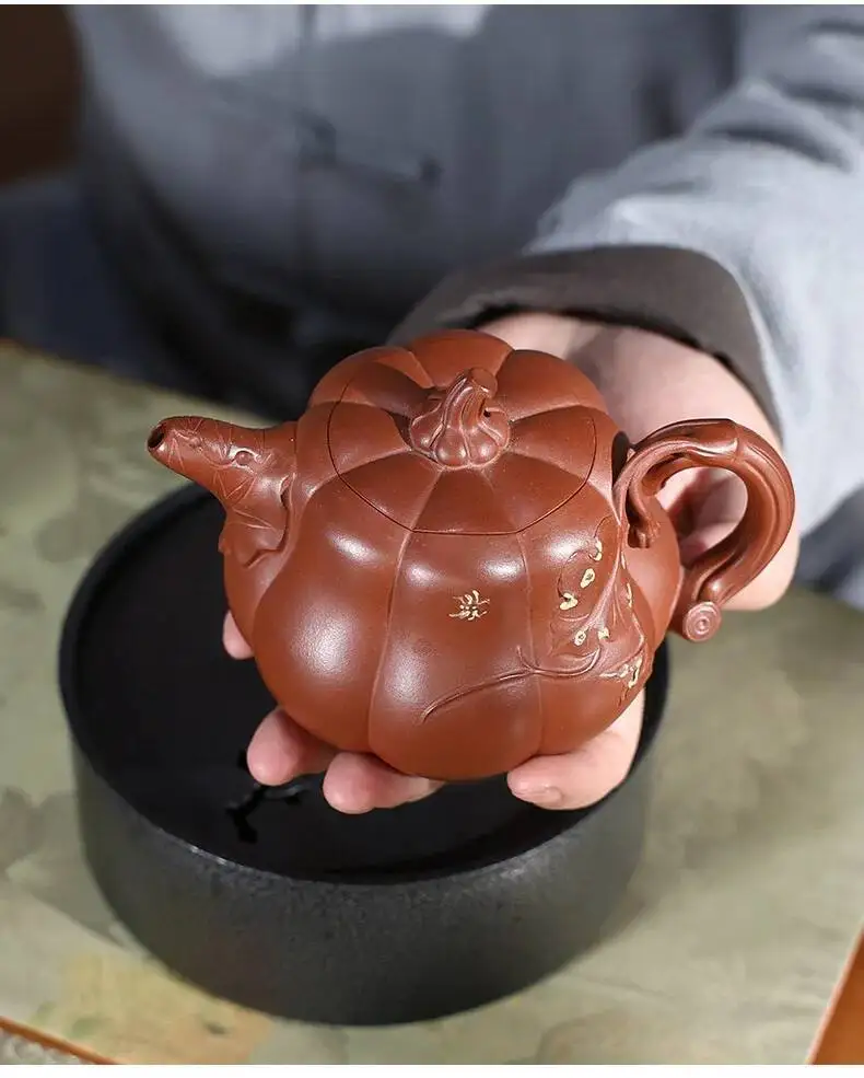 1PCS 340ML Yixing purple clay teapot original ore section mud creative biomimetic plant pumpkin shaped teapot zisha tea set