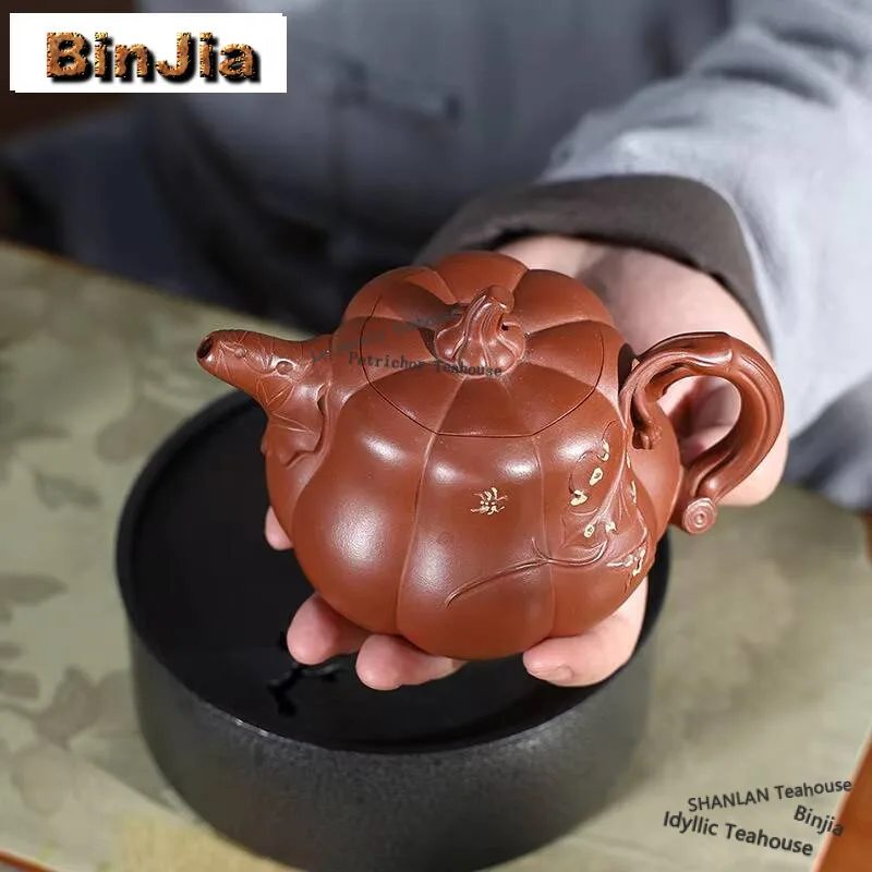 1PCS 340ML Yixing purple clay teapot original ore section mud creative biomimetic plant pumpkin shaped teapot zisha tea set