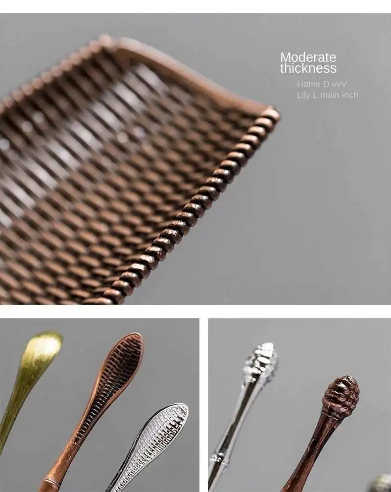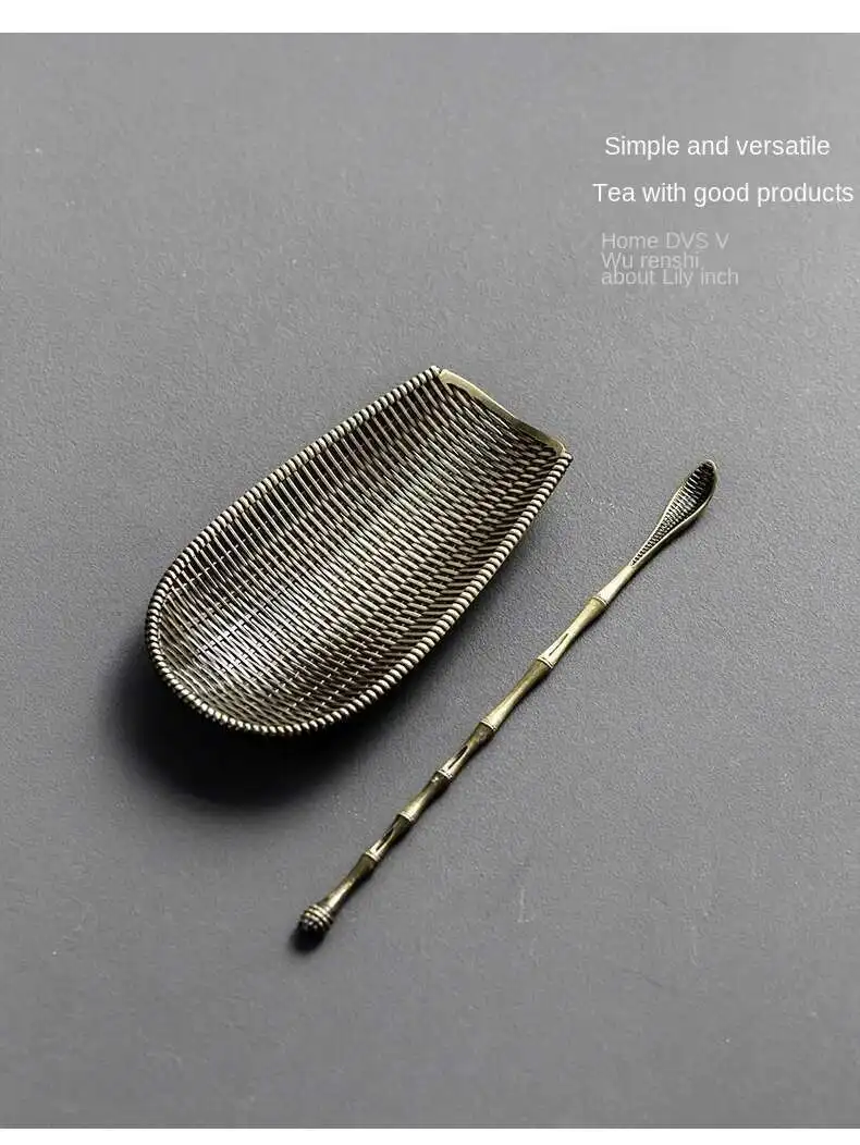 Alloy Bamboo Woven Tea Spoon Caddy Spoon Tea Holder Tea Reward Tea Ceremony Kung Fu Tea Utensils Tea Shovel Filter Scoop