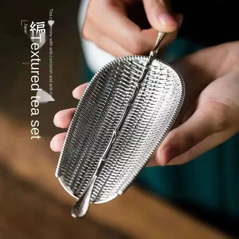 Alloy Bamboo Woven Tea Spoon Caddy Spoon Tea Holder Tea Reward Tea Ceremony Kung Fu Tea Utensils Tea Shovel Filter Scoop