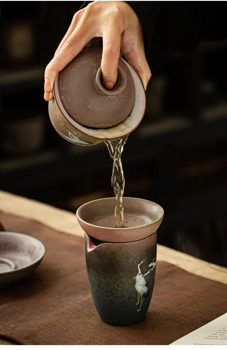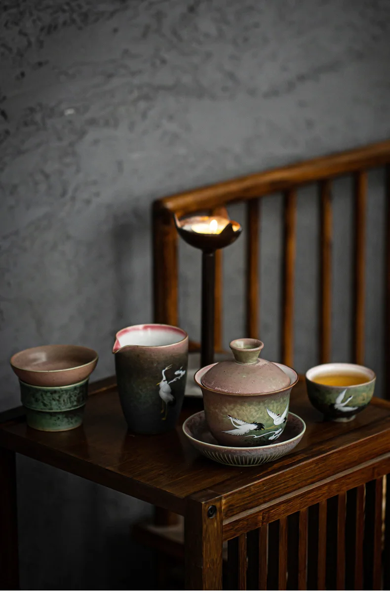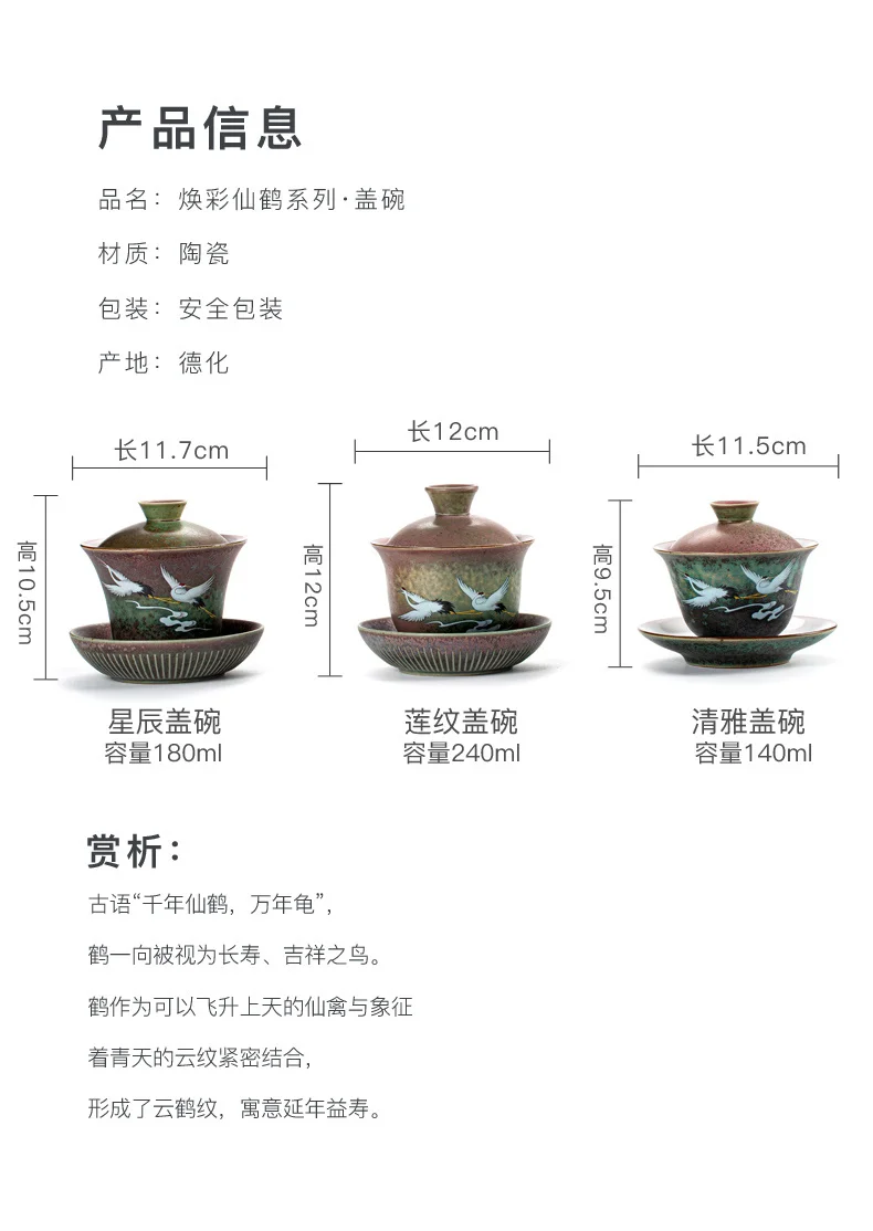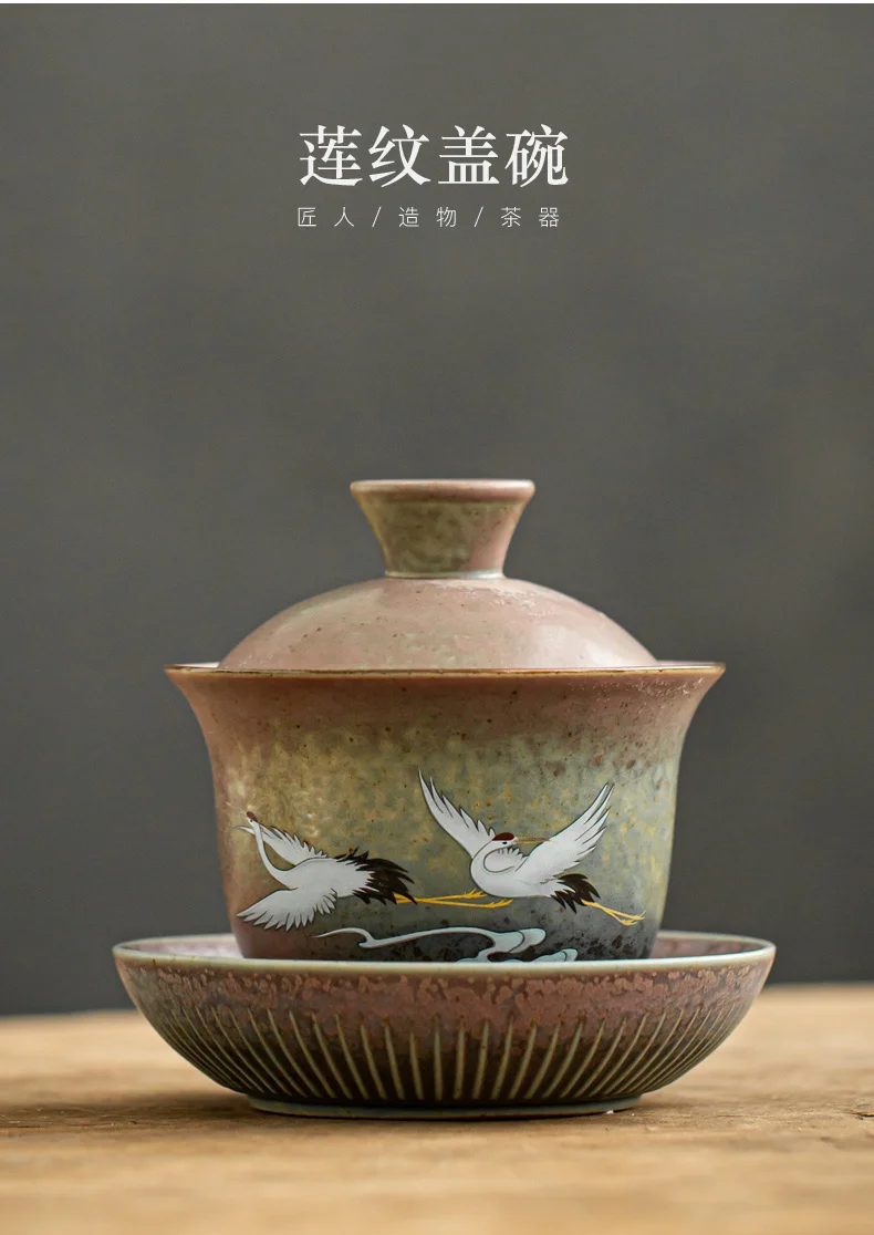Be the first to review “Anti-scald Large Ceramic Retro Tea Cover Bowl with Lid Sancai Gaiwan Single Tea Bowl Hand Painted Shining Crane Cover Bowl” Cancel reply