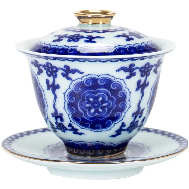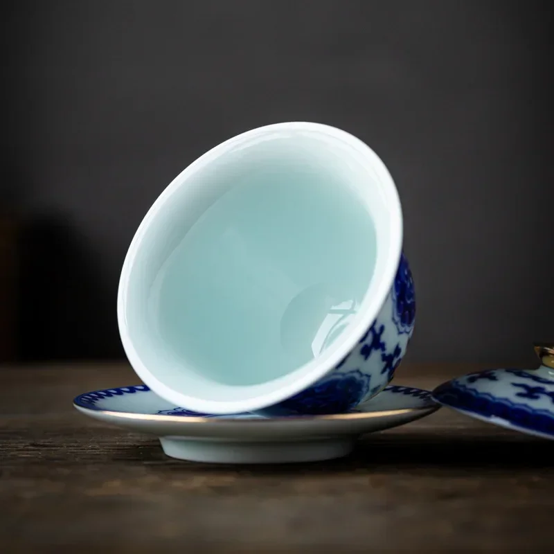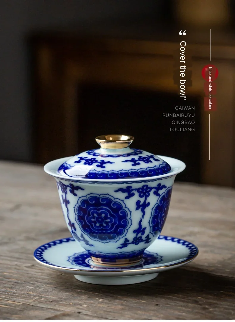 Blue and White Porcelain Cover Bowl Single Tea Preparation Ceramic Kung Fu Tea Set Tea Bowl Hand Grasping Teapot Gaiwan