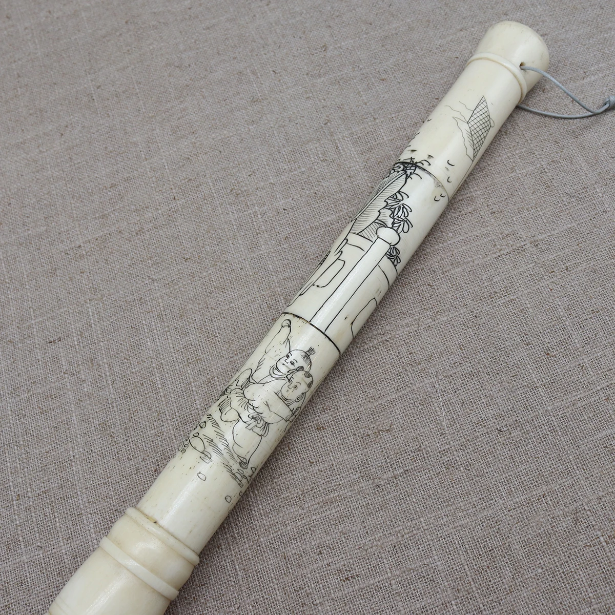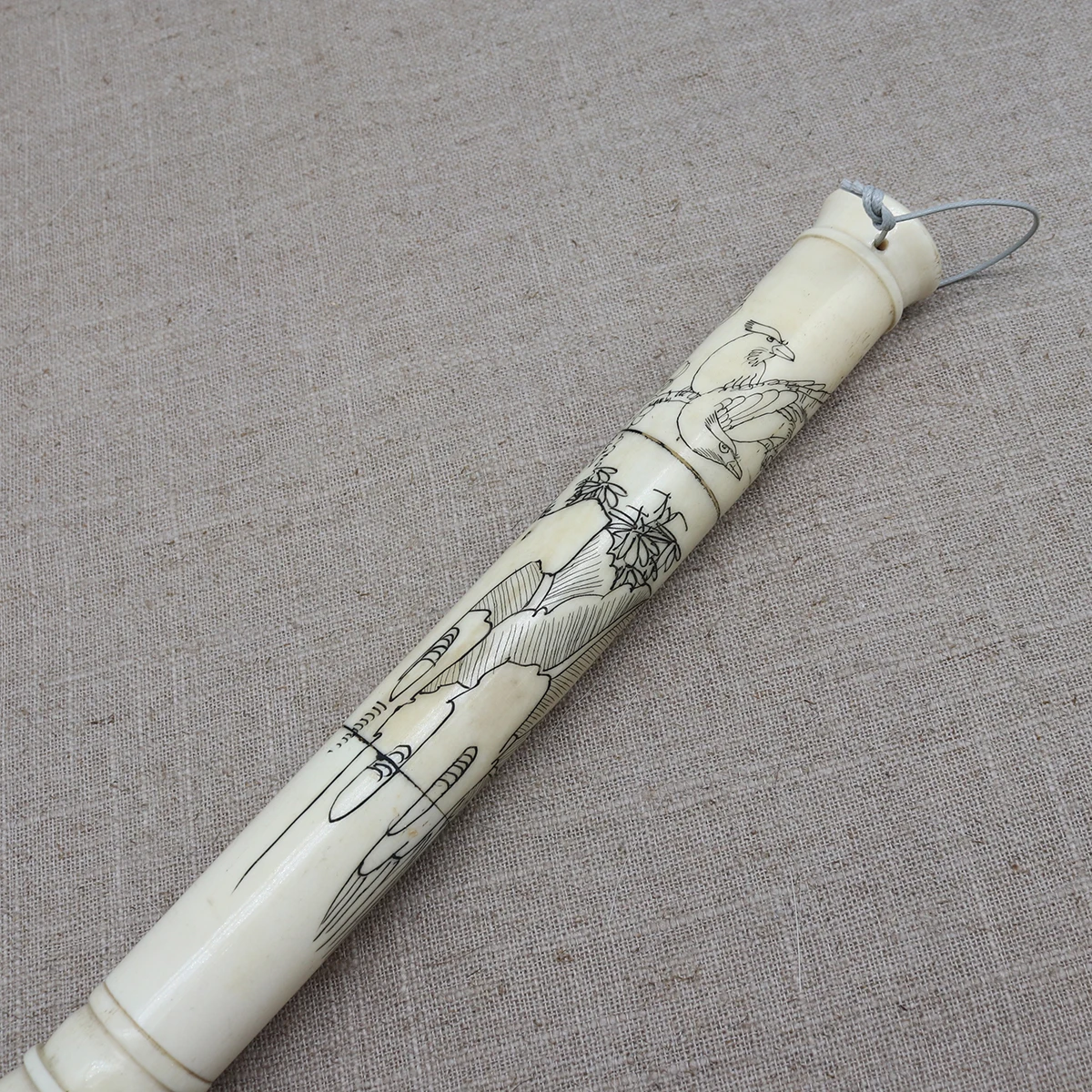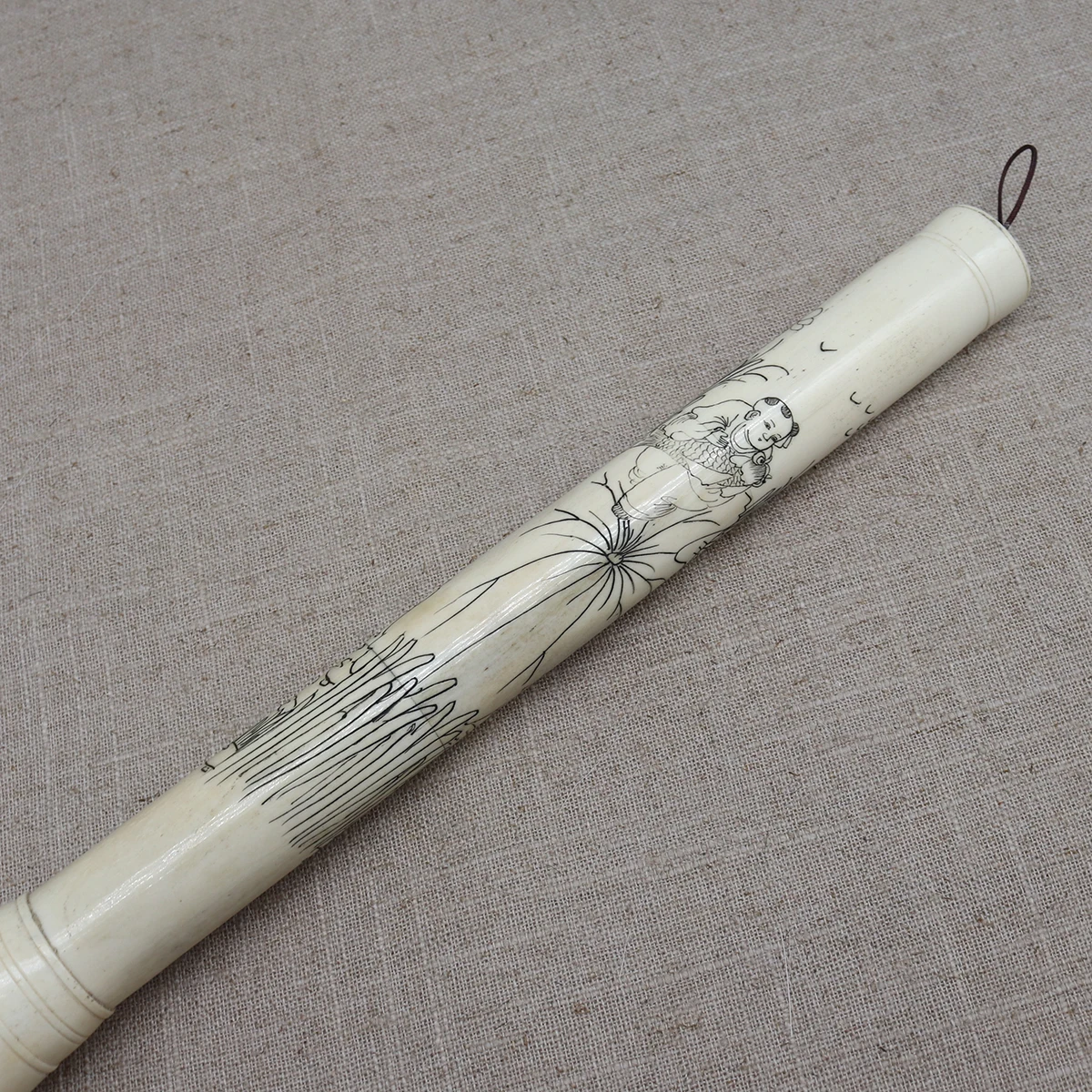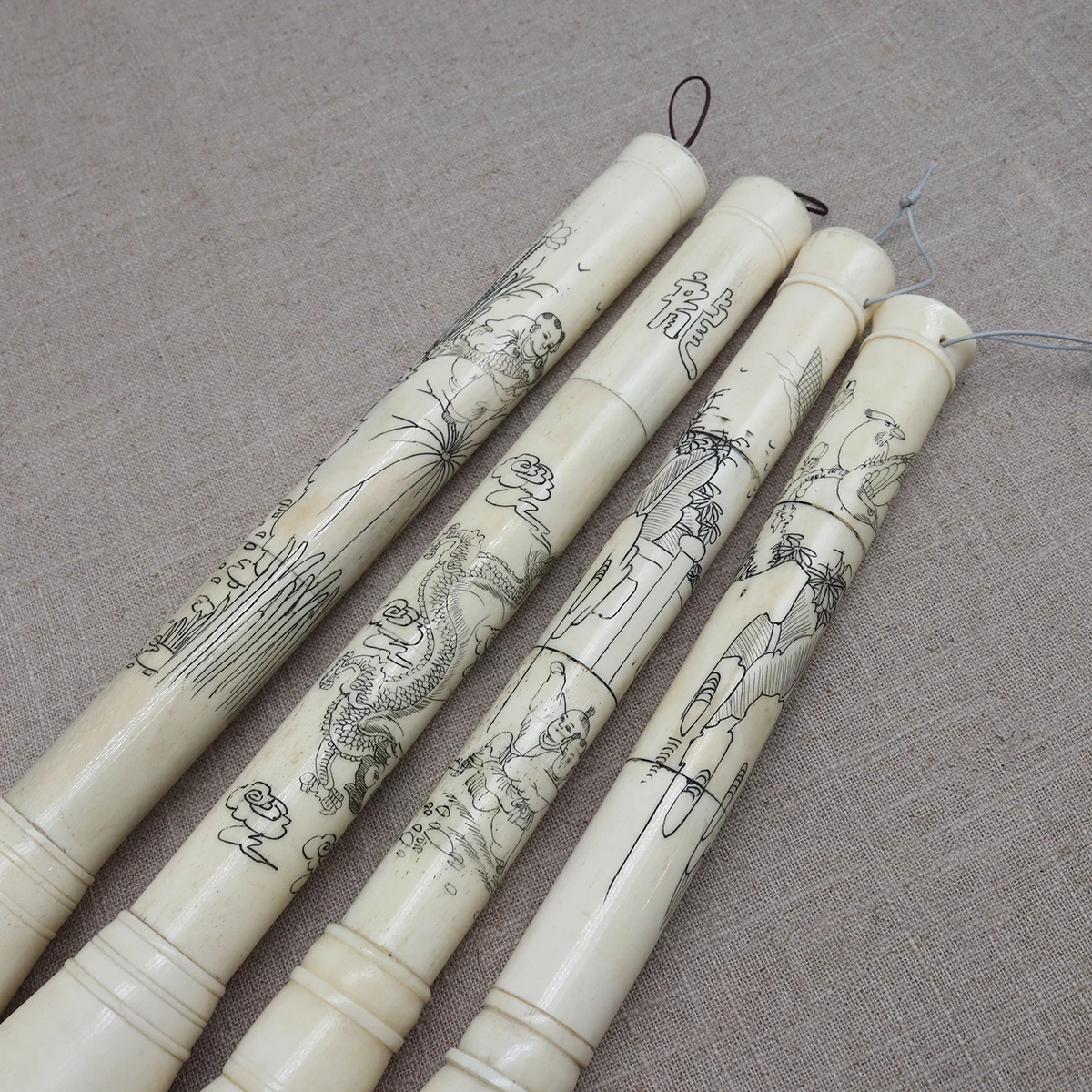 The painting and calligraphy is carved on the bone.