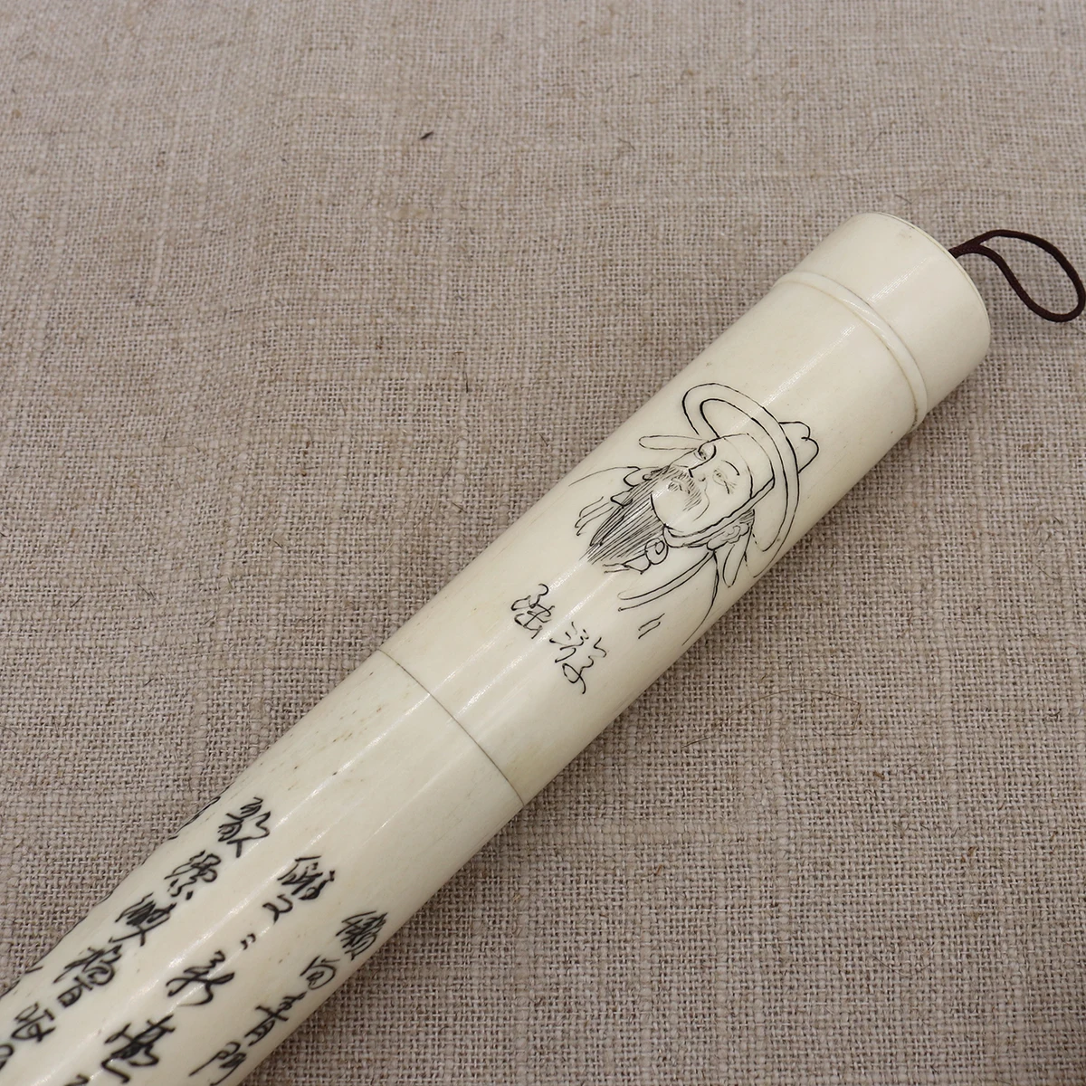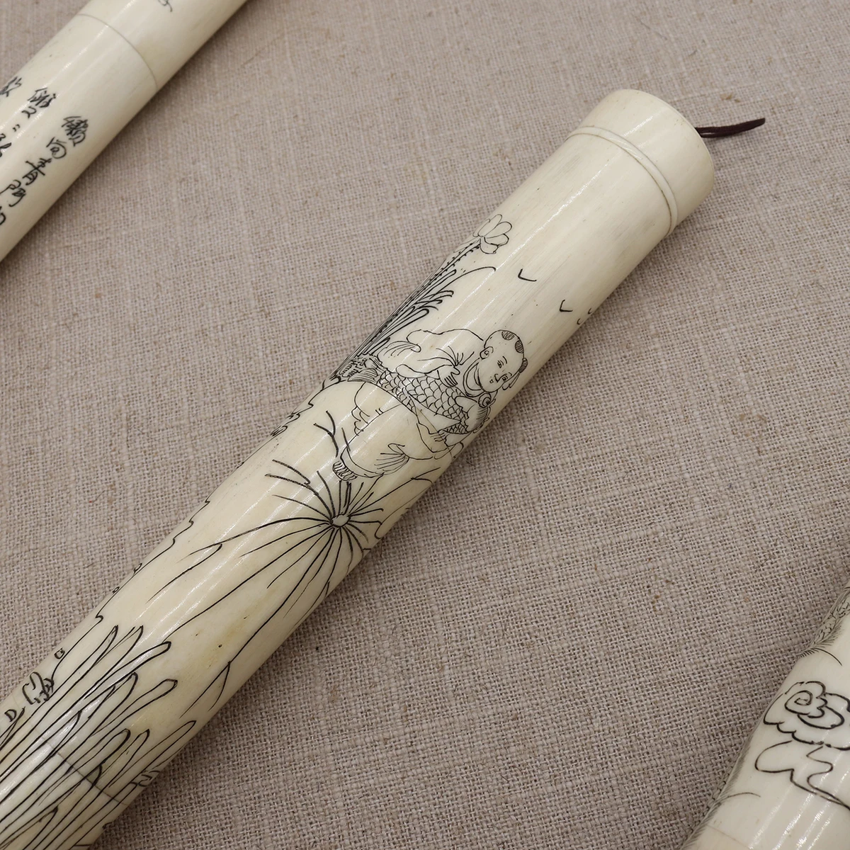 The painting and calligraphy is carved on the bone.