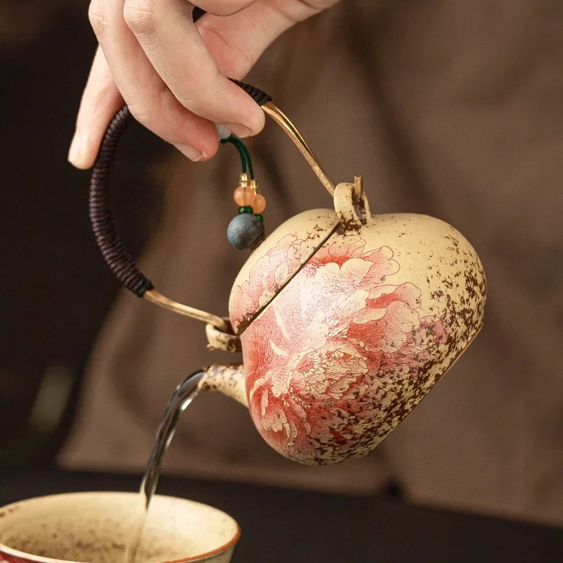 190ml Retro Flower Gilded Silver Hand Grasping Pot Old Rock Mud Treasure Bottle Pot Coarse Pottery Filter Kettle Kung Fu Teaset