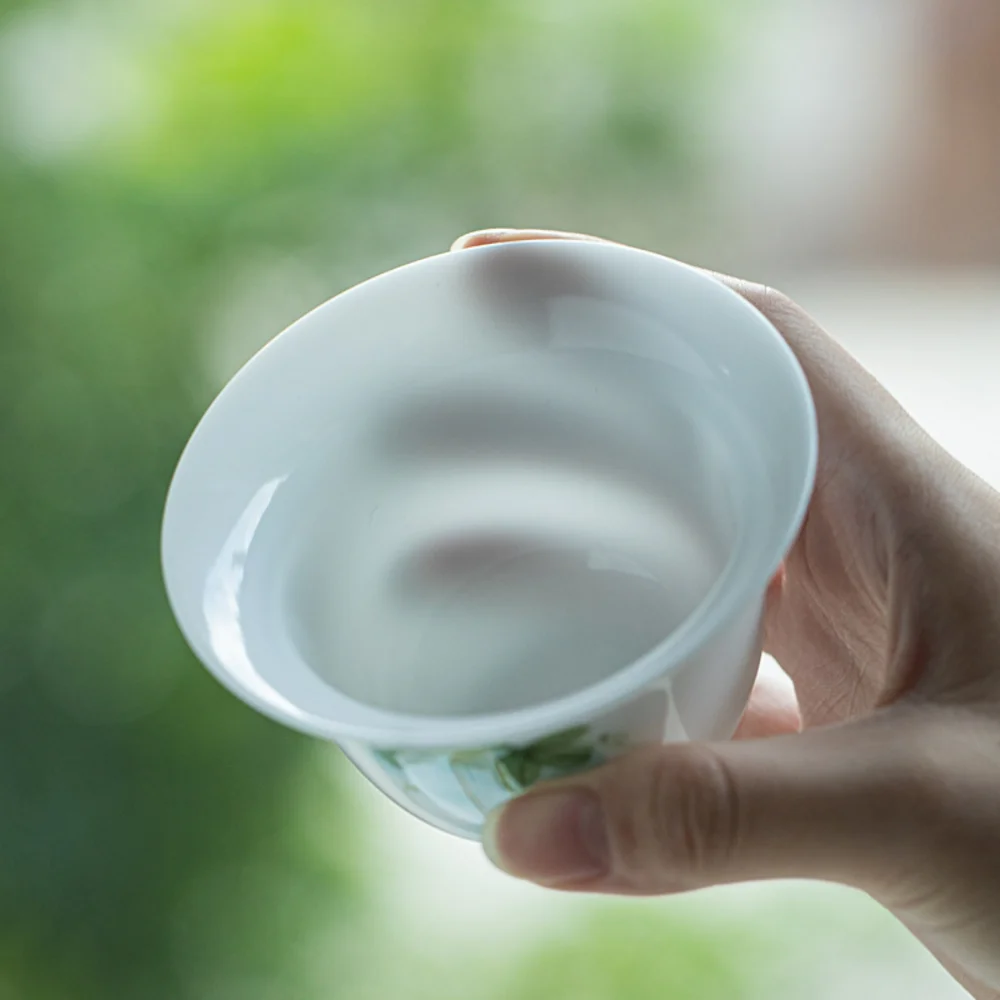 Sheep Fat Jade White Porcelain Gaiwan 360 ° Filtered Tea Bowl Anti Scalding Design Single Ceramic Tea Cup Kung Fu Tea Set