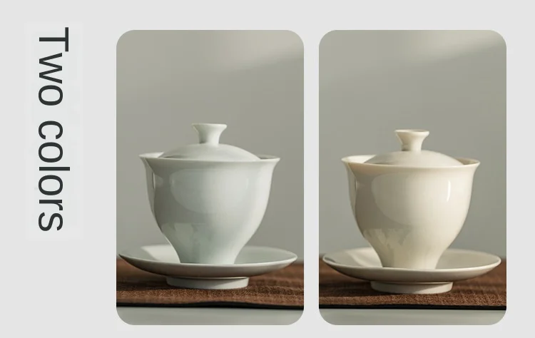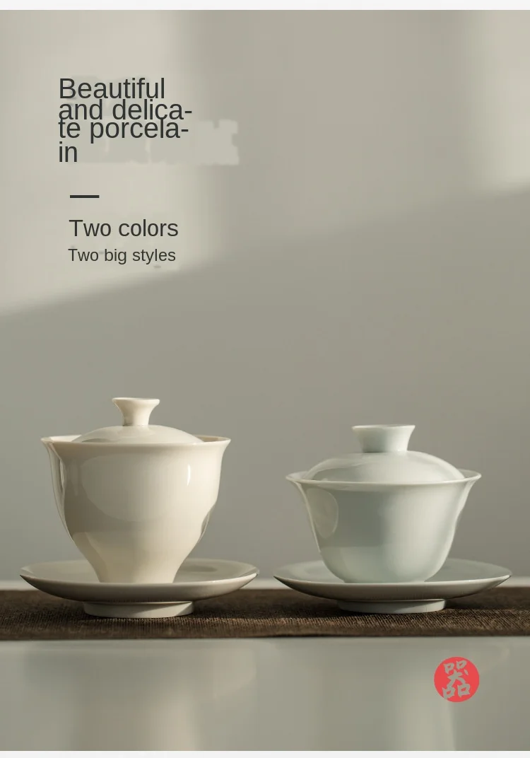 Sheep Fat Jade White Porcelain Gaiwan 360 ° Filtered Tea Bowl Anti Scalding Design Single Ceramic Tea Cup Kung Fu Tea Set