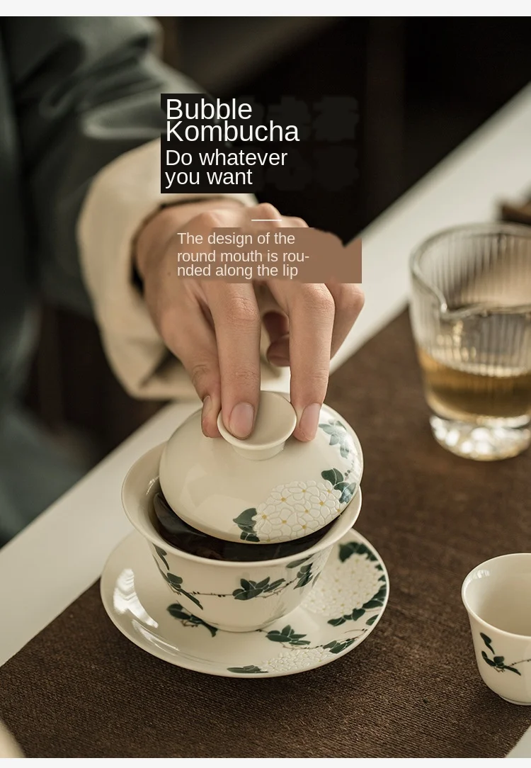 Hand-Painted Ceramic Whiteware Three-Force Cover Bowl Large Kung Fu Three-Force Bowl Handmade Ceramic Tea Cup Tea Bowl Gaiwan