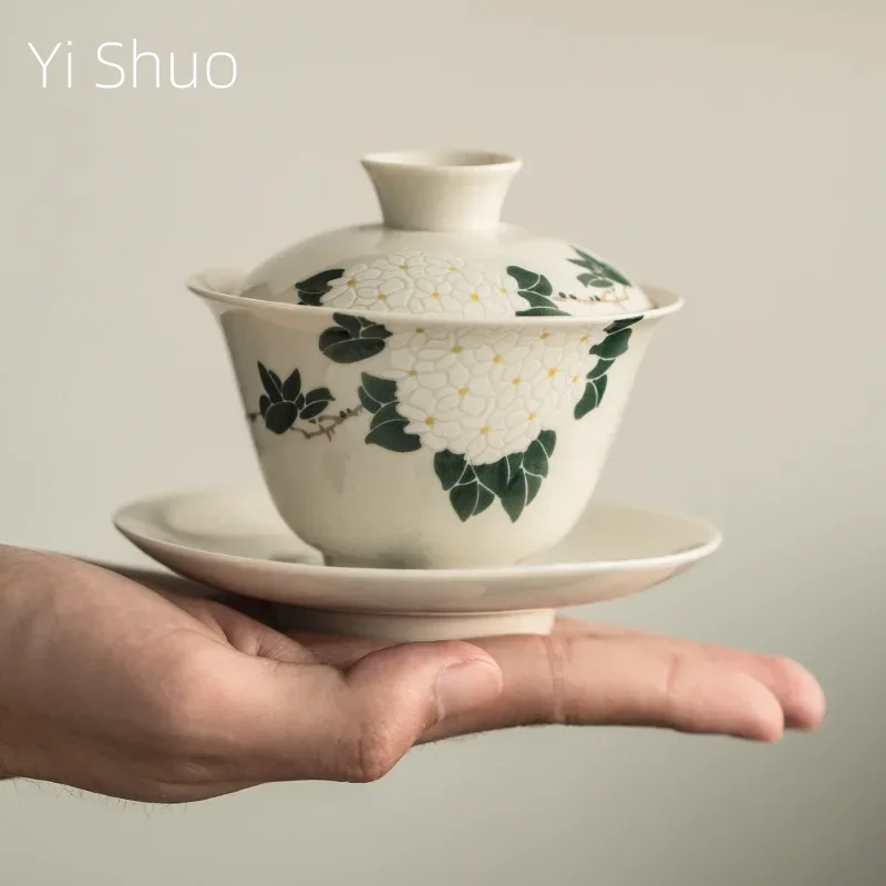 Chinese Ceramic Gaiwan Hand Painted Teacup Tea tureen handmade Porcelain Teaware Accessories Drinkware Personal Single Cup
