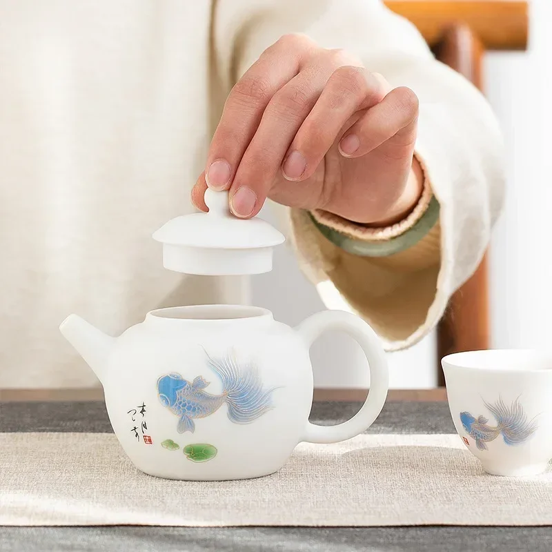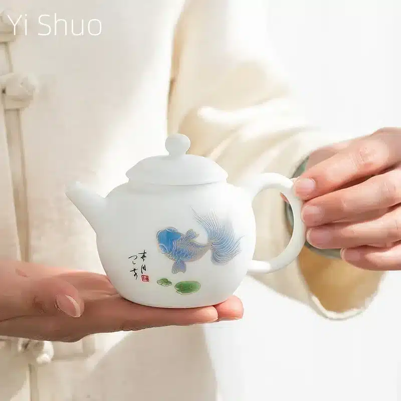 High-end Ice Jade Porcelain Teapot Luxury Tea Infuser Pot Household Tea Brewing Kettle with Ball Hole Tableware Supplies Craft