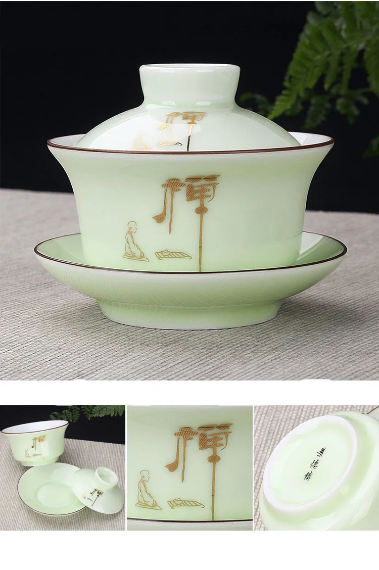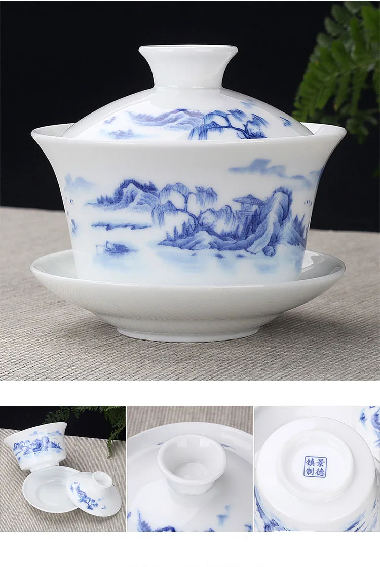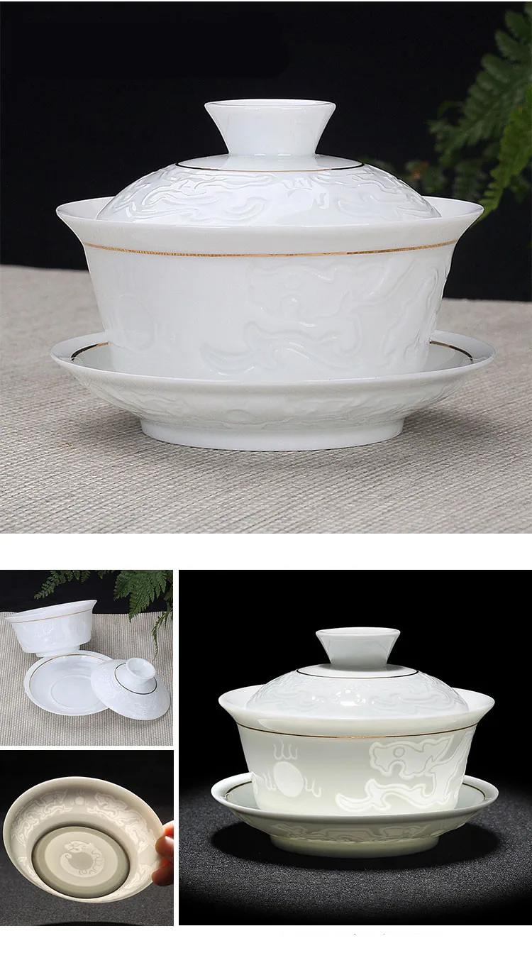 130ML Sheep Fat Jade Porcelain Gaiwan Enamel Colored Blue And White Dragon Palace Tea Tureen Tea Brewing Cover Bowl Tableware
