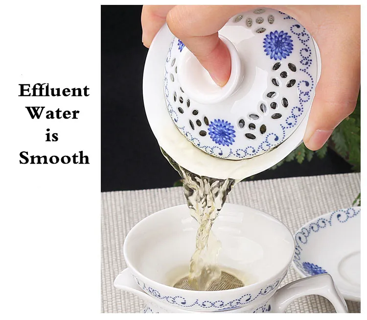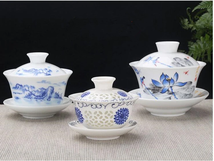 Blue and White Color Dragon Flower Pattern Sancai Gaiwan Tea Tureen Infuser Kitchen Teaware Drinking Accessories
