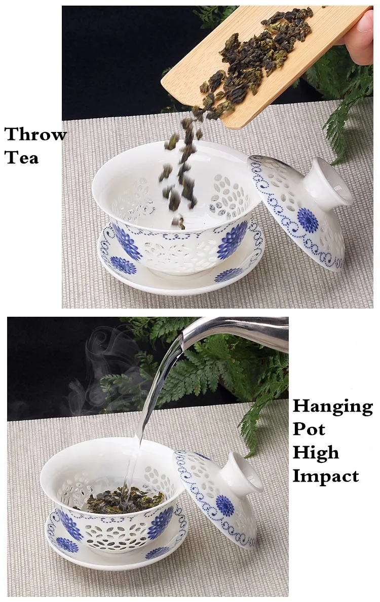 Large Capacity Porcelain Gaiwan for Travel, Cover Bowl, Gai Wan Chinese Tea Cup with Lid and Saucer, Puer Set, Ceramics, 350ml