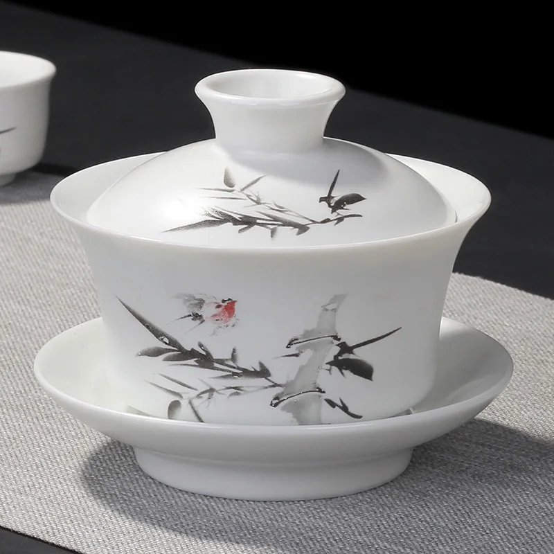 Chinese Hand Painted Kungfu Tea Set, Tureen Dehua, White Porcelain, Gaiwan, Pot Set for Travel, Fast Cup, High Quality