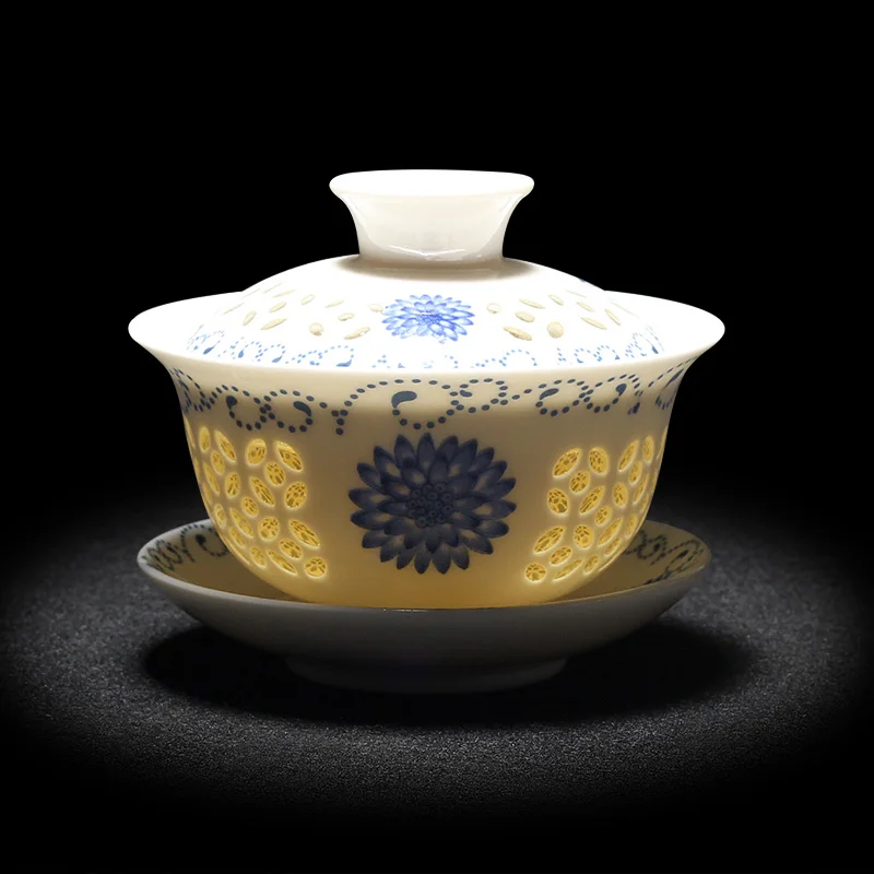 Blue and White Color Dragon Flower Pattern Sancai Gaiwan Tea Tureen Infuser Kitchen Teaware Drinking Accessories