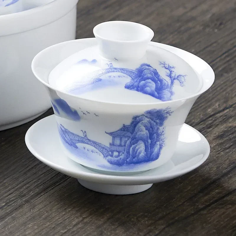 Jade Porcelain Mountain Gaiwan Set For Tea Tureen Teaware Cup Chinese White Tea Bowls Chawan Tea Ceremony Set Lily Deng