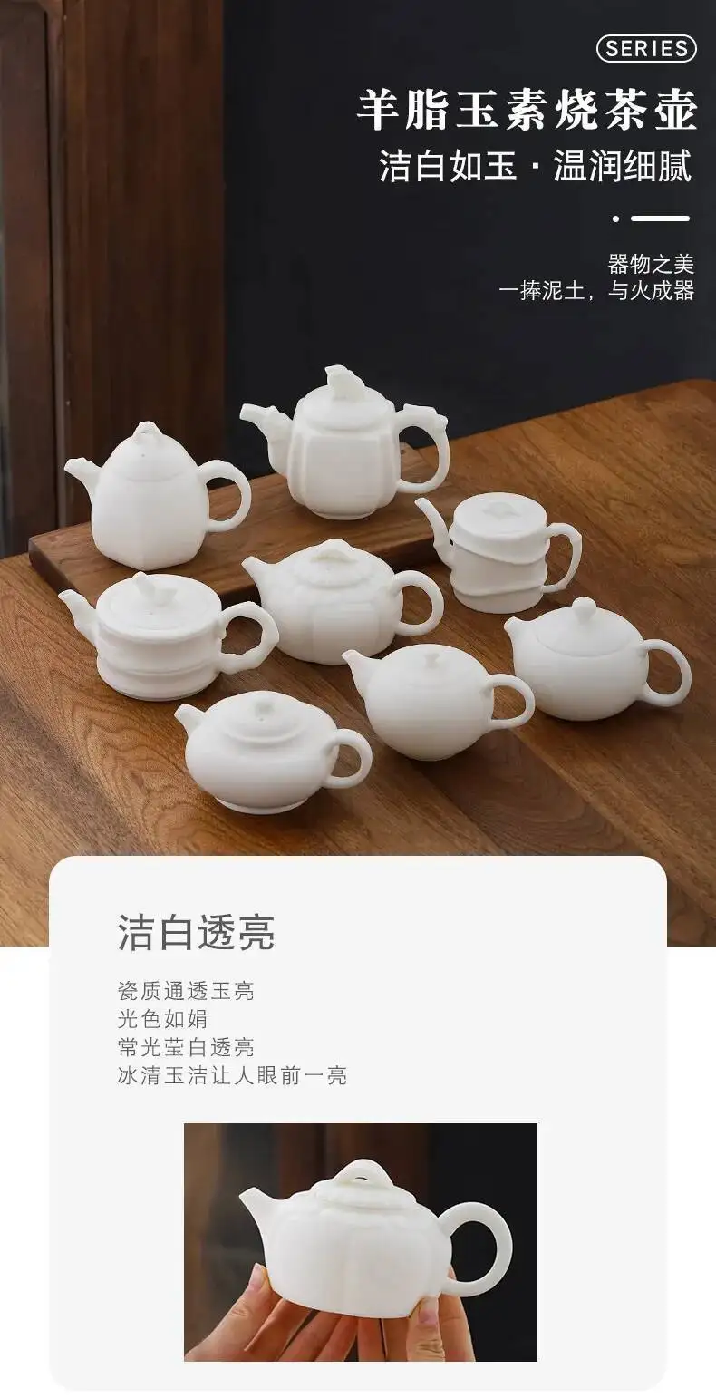 Sheep Fat Jade Porcelain Teapot Handmade Tea Infuser Pot Household Tea Maker Kettle With Filter Cha Supplies Ornaments Drinkware