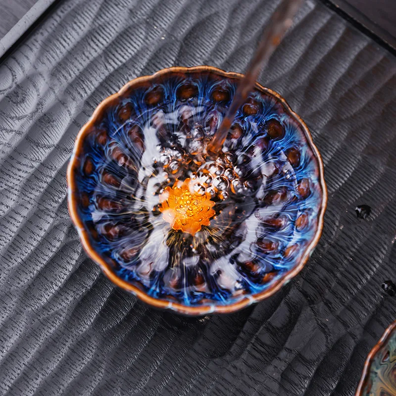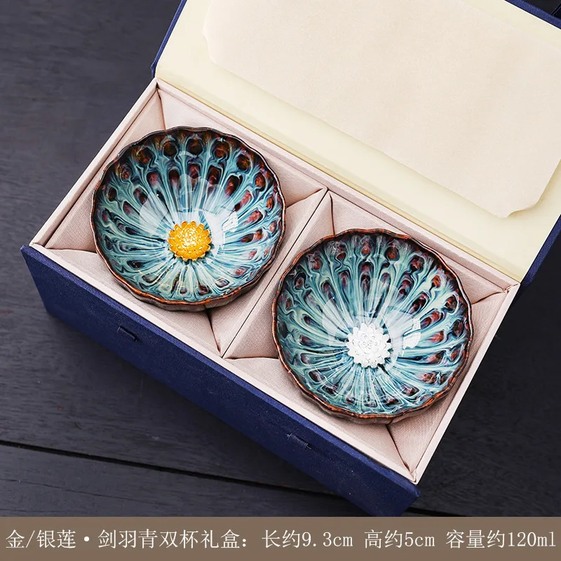 Dunhuang Lotus Tea Cup Master Cup Jianzhan Ceramic Kung Fu Tea Cup Kiln Change Marriage Cup Home Use Gifts for Friends