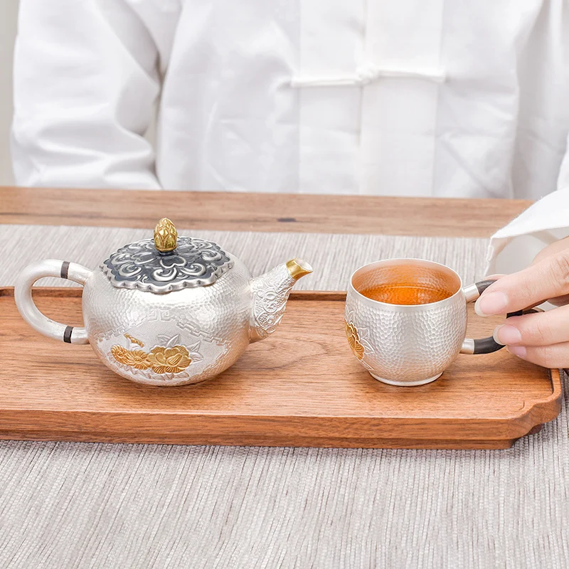 999 sterling silver handmade tea set Japanese retro teapot kettle teacup home office tea ceremony Kungfu tea set 250ml