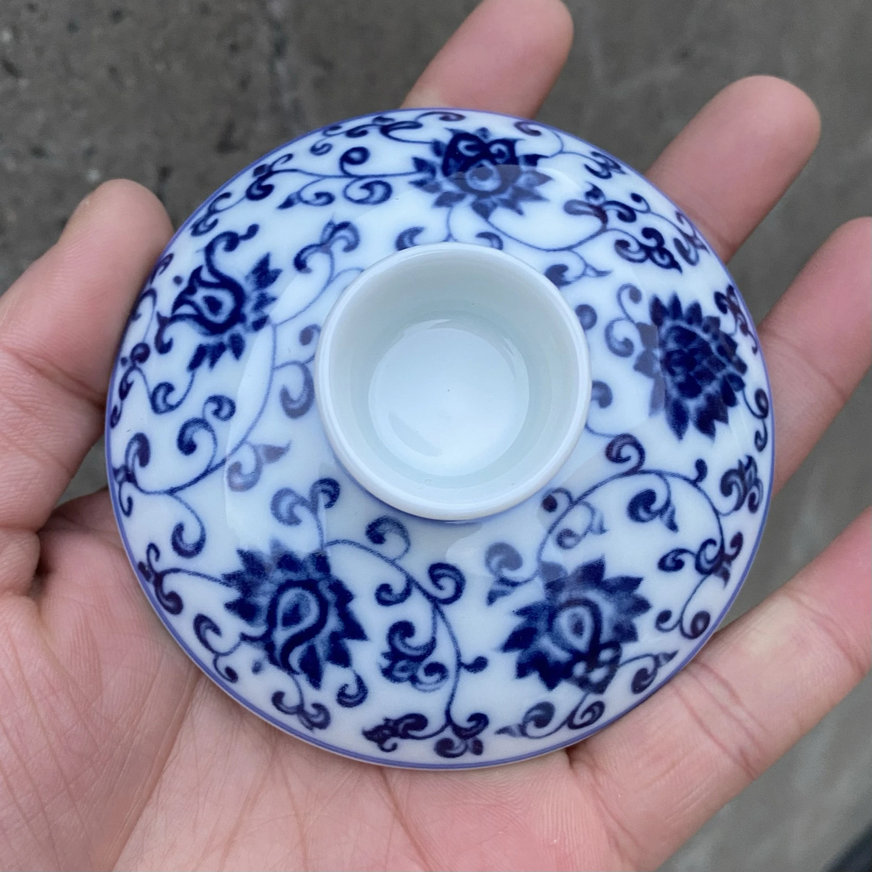 Blue and White Porcelain Cover Bowl Single Tea Preparation Ceramic Kung Fu Tea Set Tea Bowl Hand Grasping Teapot Gaiwan