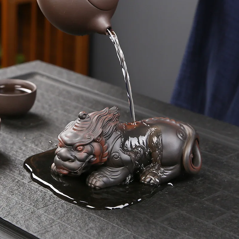 Handmade Purple Clay Pixiu Tea Pet, Nurturable Wealth-attracting Ceramic Home Decor, Tea Plaything, Tea Table Decoration, Tea