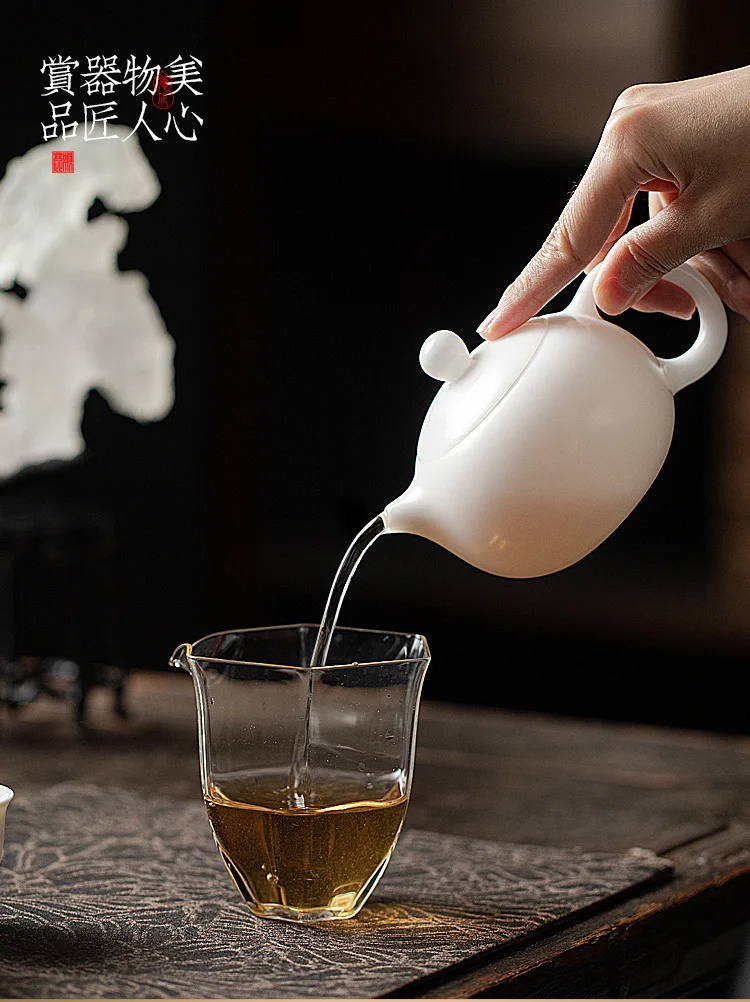 Handmade Dehua White Porcelain Teapot Small Xishi Pot Household Tea Maker Kettle with Infuser Drinkware Accessories Ornaments