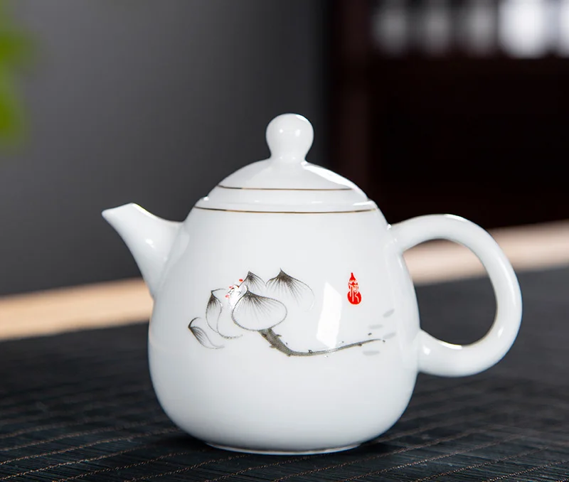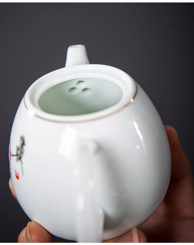 Teapot Exquisite Women's White Porcelain Chinese Embroidered Ball Ceramic Single Pot Household Anti scald Filter Kung Fu Tea Set