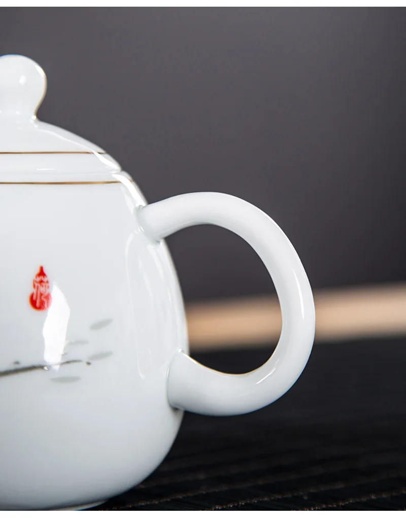 Sheep Fat Jade Porcelain Teapot Handmade Tea Infuser Pot Household Tea Maker Kettle With Filter Cha Supplies Ornaments Drinkware