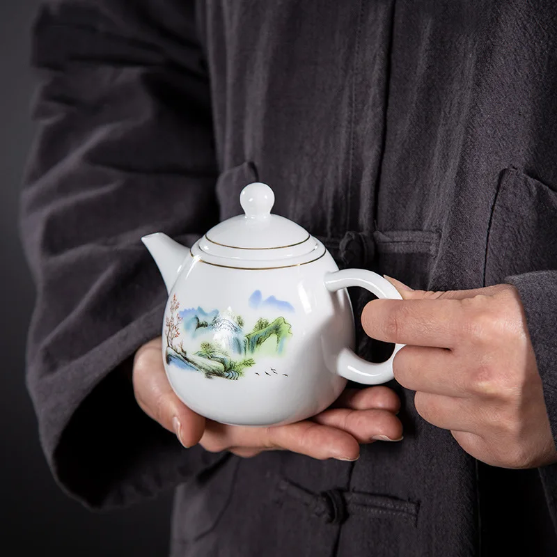 Sheep Fat Jade Porcelain Teapot Handmade Tea Infuser Pot Household Tea Maker Kettle With Filter Cha Supplies Ornaments Drinkware