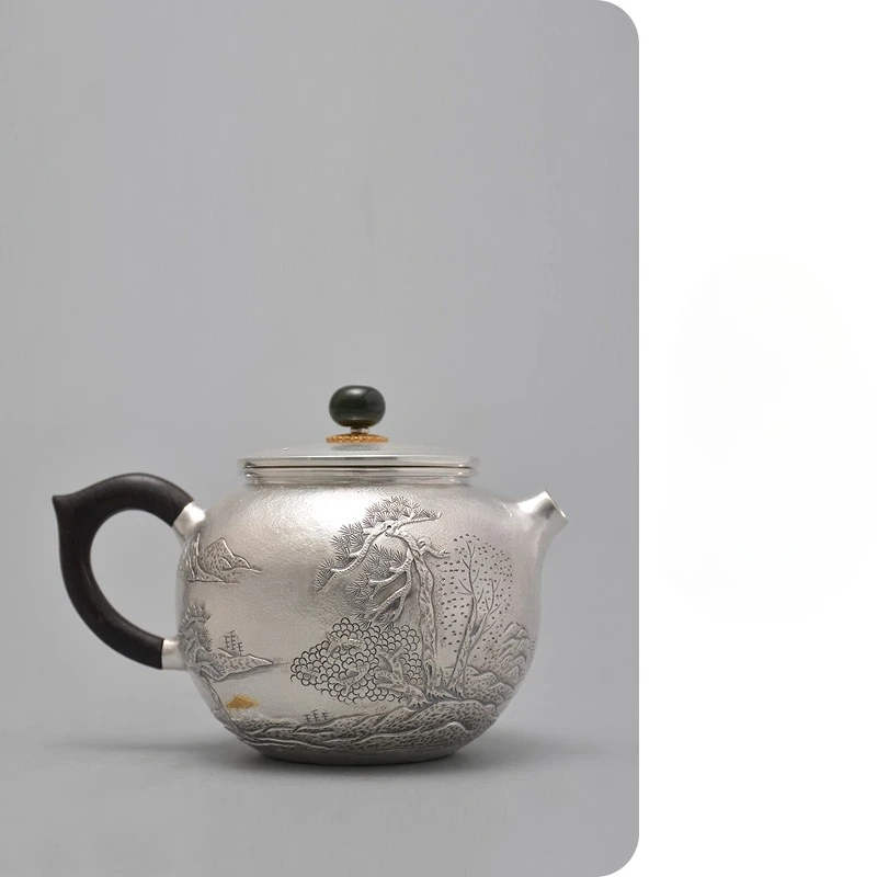 Sterling Silver 999 Silver Teapot, Ten Thousand Horses Galloping, Kung Fu Teapot Set, Chinese Tea Ceremony
