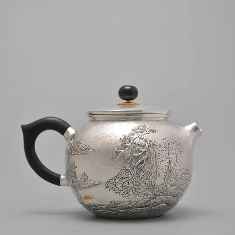 Jiangyan Qianli Silver Pot Sterling Silver 999 Brewing Teapot Pure Handmade High-end Japanese Small Silver Pot