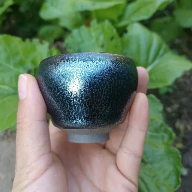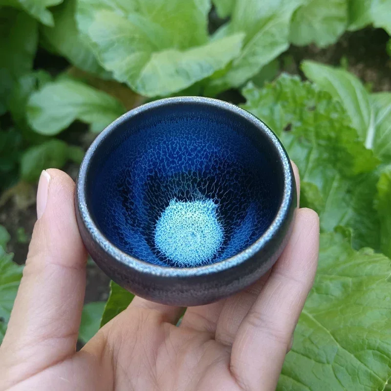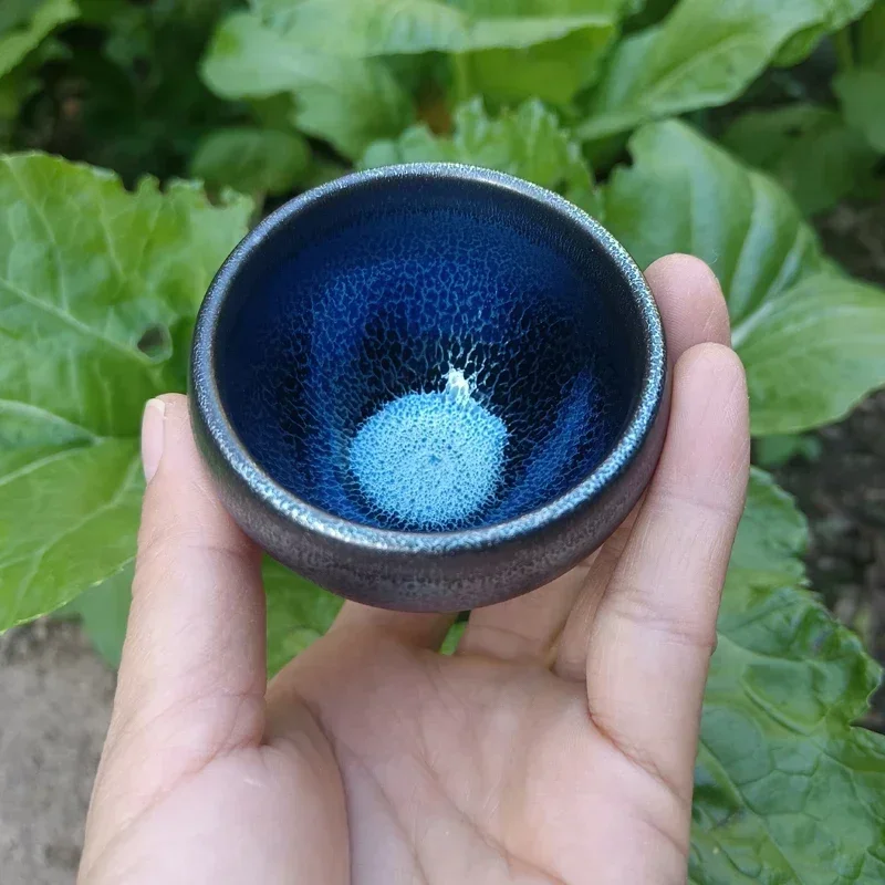 Jianzhan 60ml Tenmokus Tea Cup with great blue glaze Ceramic Tea Bowl Heat Resistant Keep Warm Natural Clay Ore Glaze China