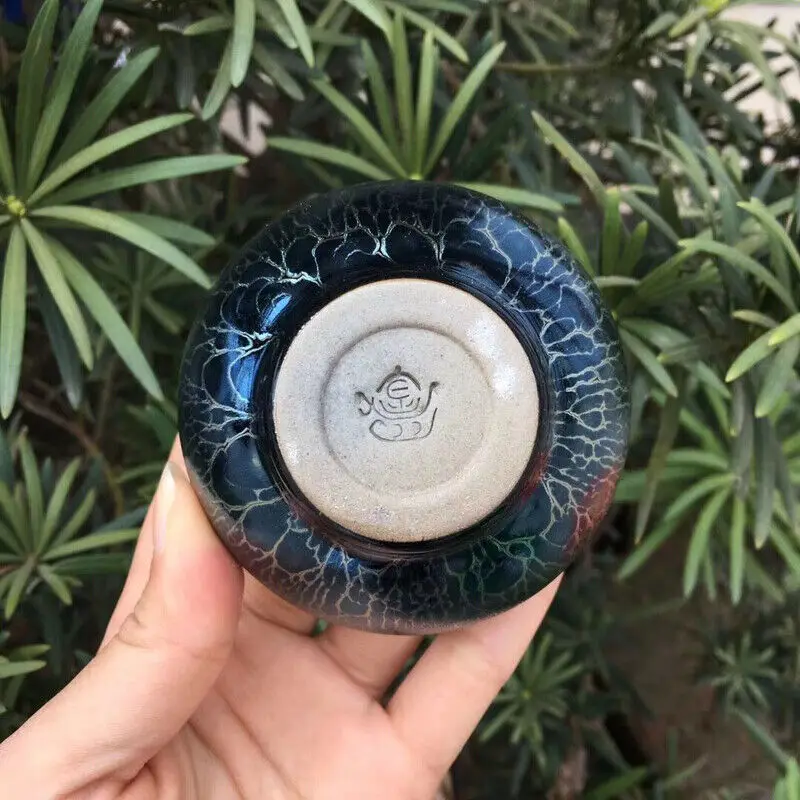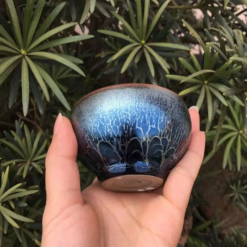 Jianzhan 60ml Tenmokus Tea Cup with great blue glaze Ceramic Tea Bowl Heat Resistant Keep Warm Natural Clay Ore Glaze China