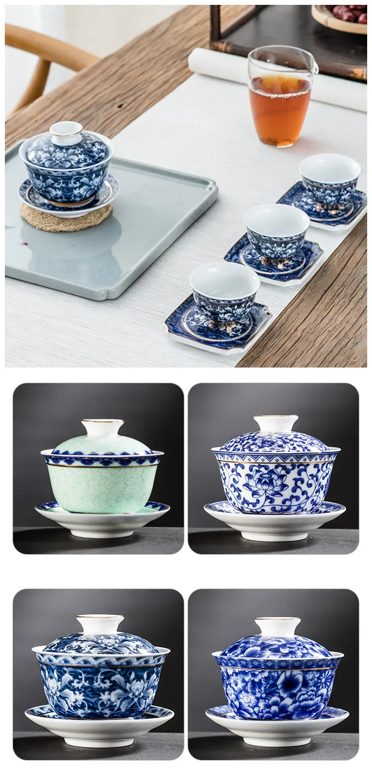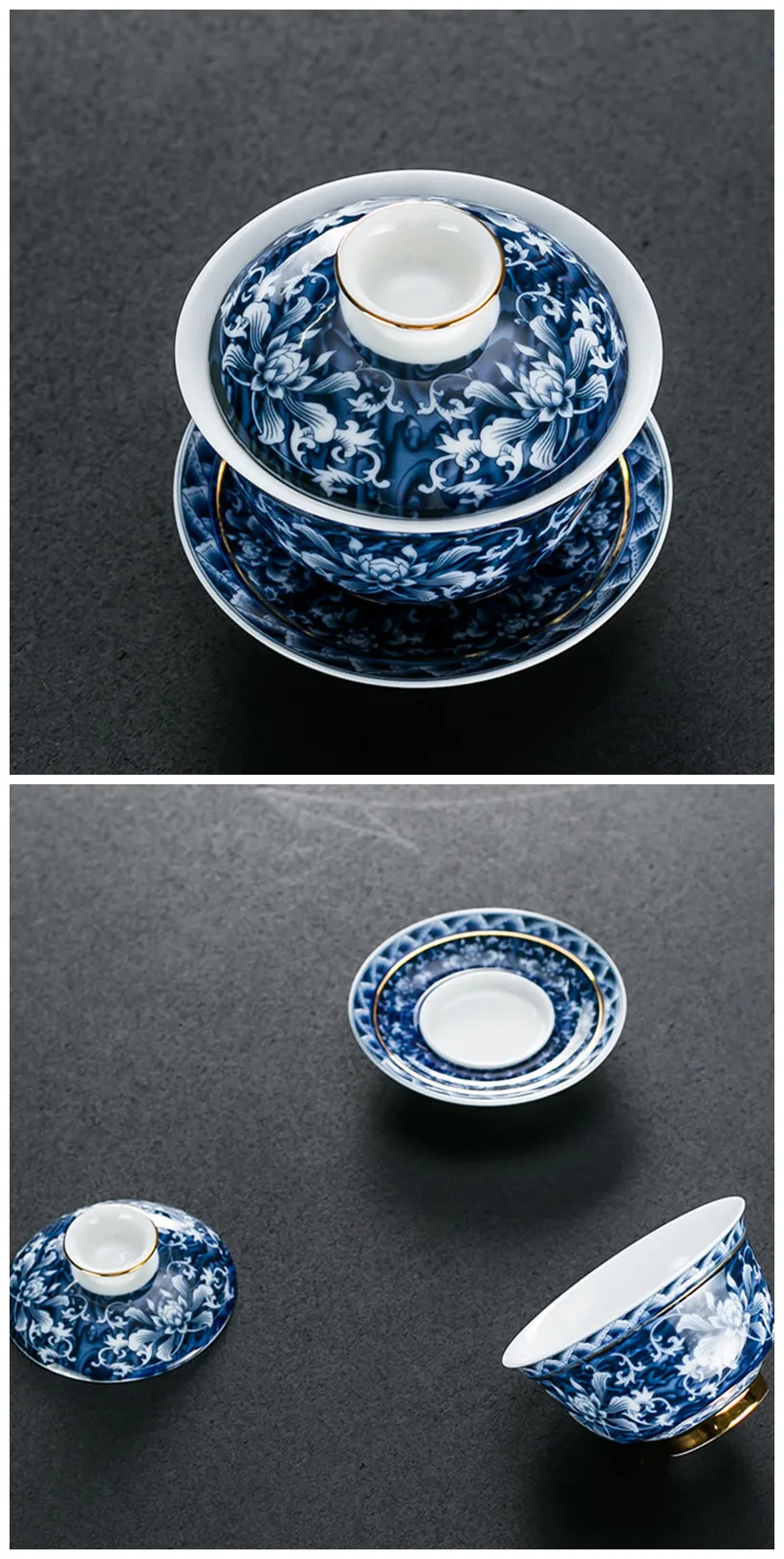 Jingdezhen Ceramic Gaiwan Teacup handmade Tea Tureen Boutique tea bowl Chinese Porcelain Teaware Accessories Drinkware