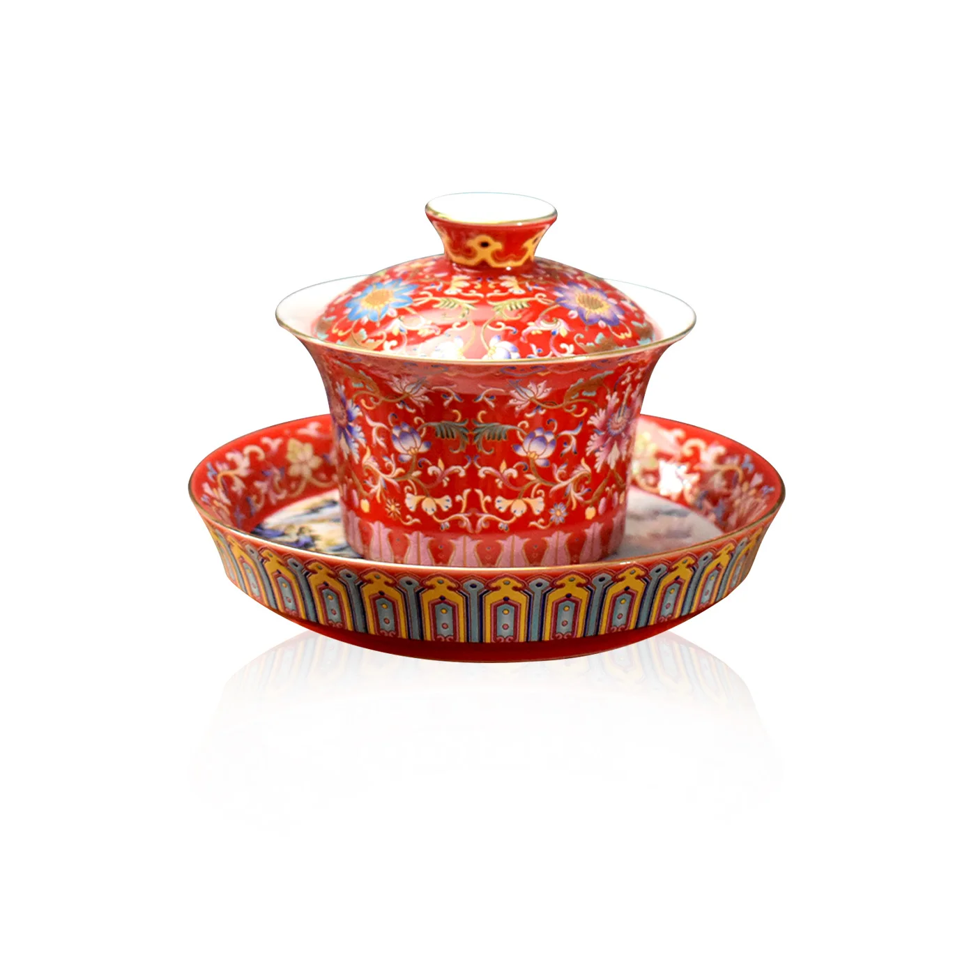 Jingdezhen Ceramic Enamel Hongyun Continuous Sancai Gaiwan Tea Cup Kung Fu Set Household Chinese Ceremony Bowl