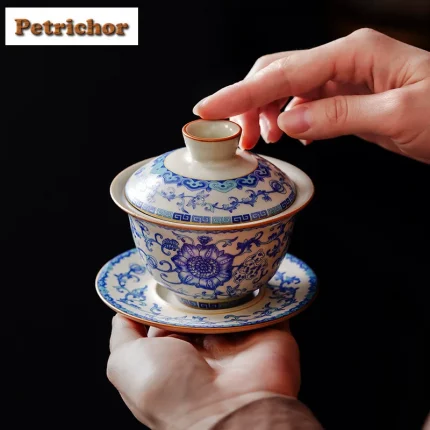 Jingdezhen Ceramic Gaiwan Teacup handmade Tea Tureen Boutique tea bowl Chinese Porcelain Teaware Accessories Drinkware