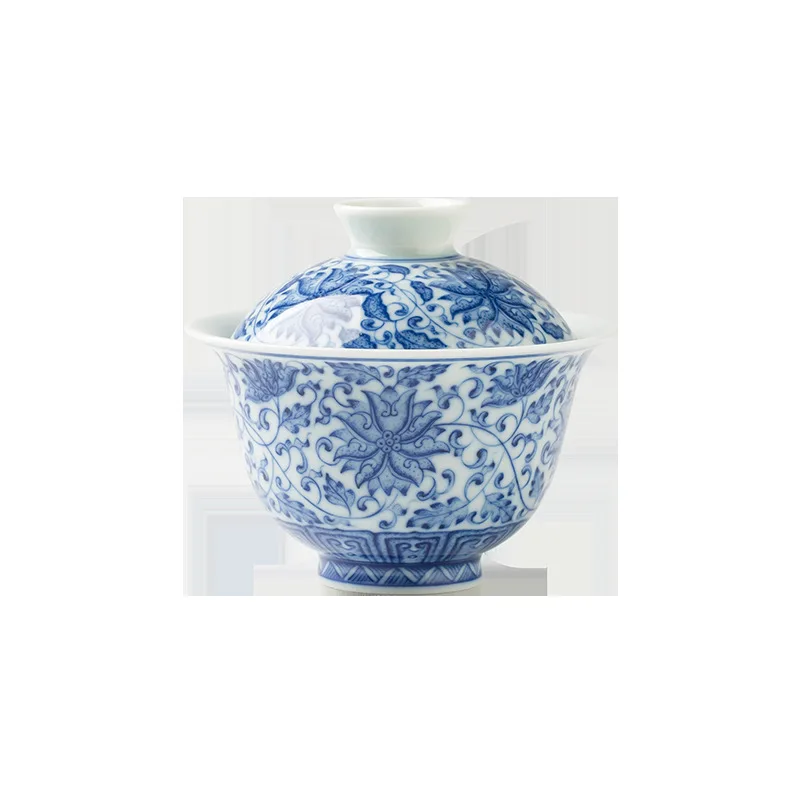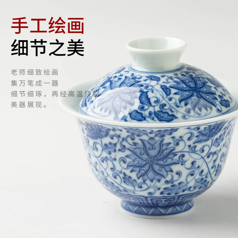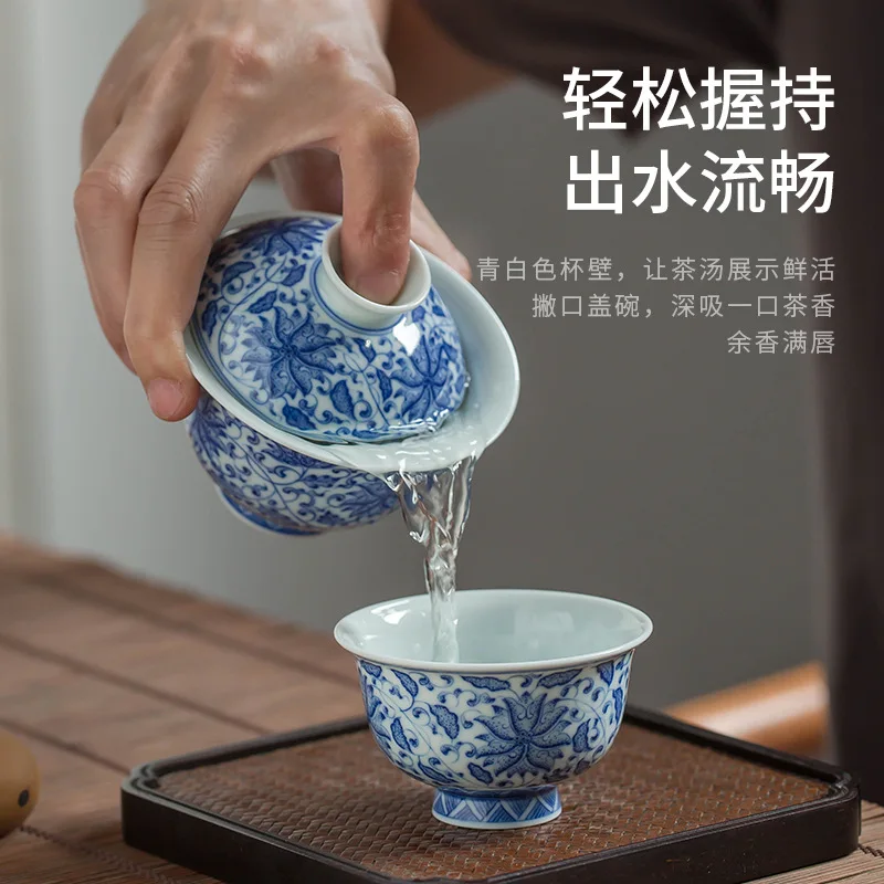 Jingdezhen Ceramic Gaiwan High Quality Sancai Tea Bowl Chinese Traditional Pattern Cover Bowl Blue and White Porcelain Tea Set
