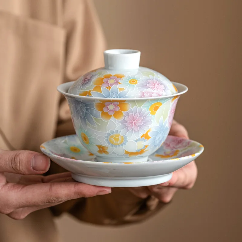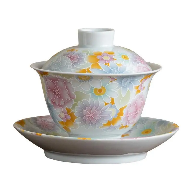 Ceramic Gaiwan, Luxury Chinese Tea Set, Tureen, Teacup, Sancai Chawan, Bowl Cup Saucer and Lid, Teaware, Color Enamel Porcelain