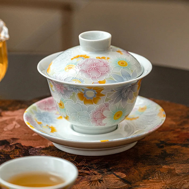 Chinese Style Painted White Porcelain Gaiwan Household Tea Set Kung Fu Tea Cup Portable Tea Maker Perfect Gifts Kitchen Tool