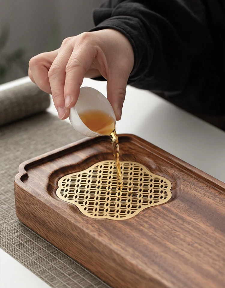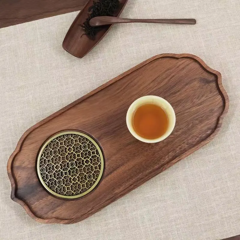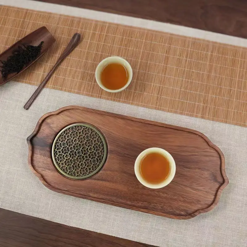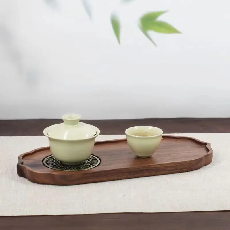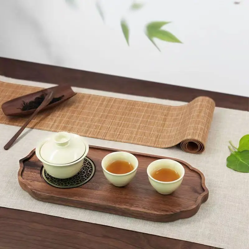 Light Luxury Tea Tray Chinese Walnut Wood Tea Tray Drainable Solid Wood Tea Tray Small Dry Brewing Table for Household Use Table
