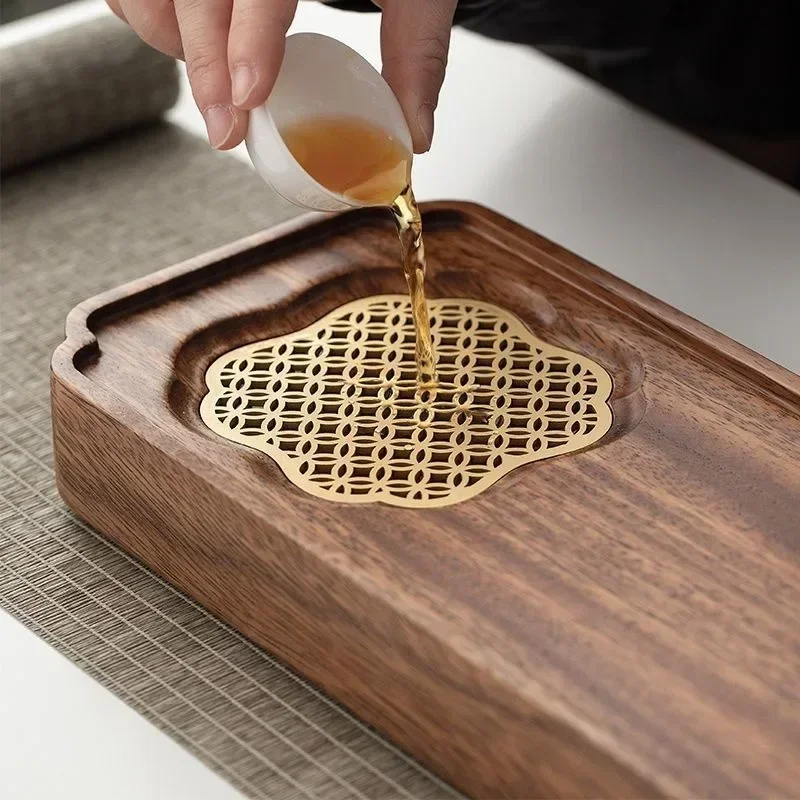Light Luxury Tea Tray Chinese Walnut Wood Tea Tray Drainable Solid Wood Tea Tray Small Dry Brewing Table for Household Use Table