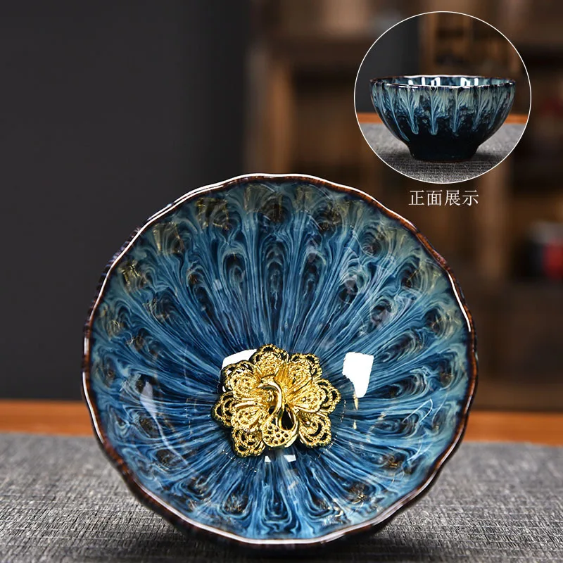 Master Cup Single Cup Wholesale Ceramic Tasting Cup Jian Zhan Tea Cup Dou Li Zhan Cup Tea Bowl Live Wholesale Golden Lotus Flowe