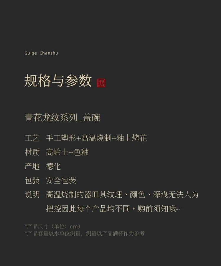 Fair cup -200ml ,Gaiwan-150ml A ,Gaiwan-150ml B ,Teacup-120ml ,Teapot-150ml |