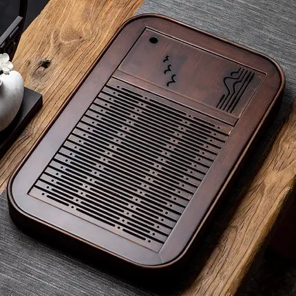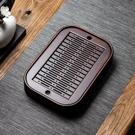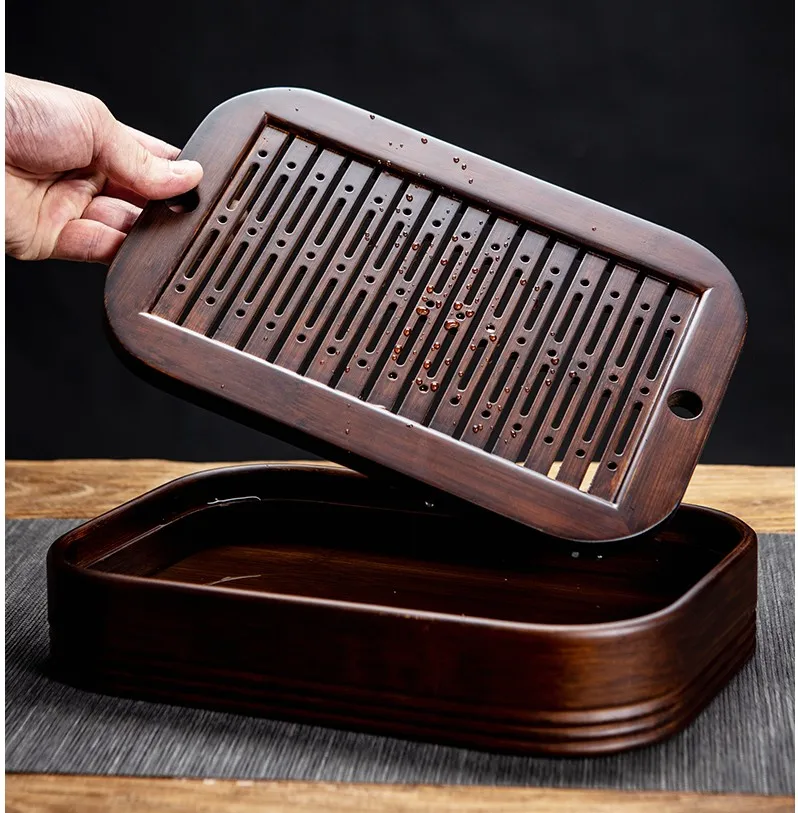 Retro Natural Bamboo Chinese Tea Tray Rectangular Detachable Tea Drainage Board Simple Exquisite Tea Serving Tray Tea Room