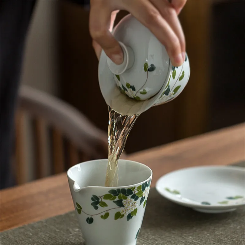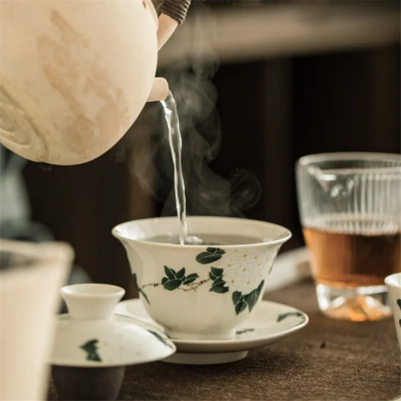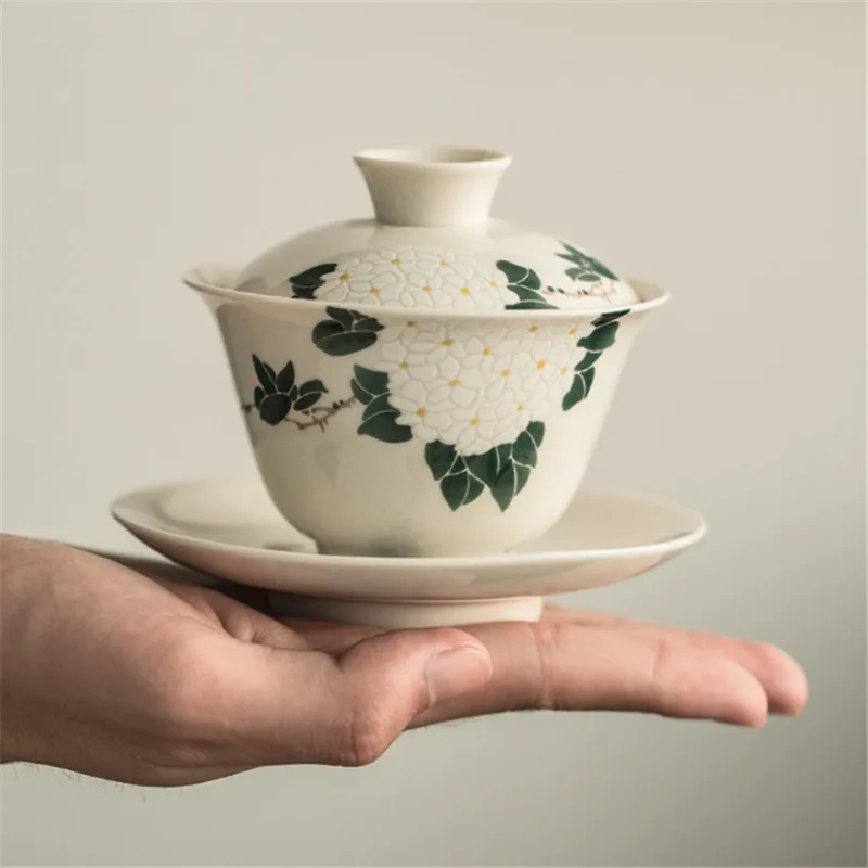 Hand Painted Magnolia Flowers Ceramic Opening Gaiwan For Tea Green Tureen Teaware Set Chinese Tea Bowl Chawan Lily Deng's Store