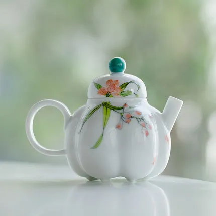 Pumpkin Shape Ceramic Teapot Hand Painted Flower China Porcelain Tea Pot Infuser Container Tea Ceremony Teaware Gifts