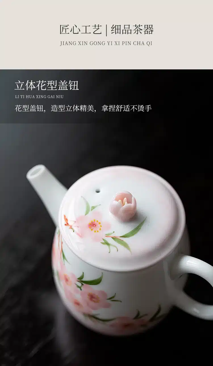 Pure Hand Painted Peach Blossom Tea Pot Kettle Japanese Teapot Porcelain Chhai Filter Handmade Puer Ceramic Pots Supplies Clay