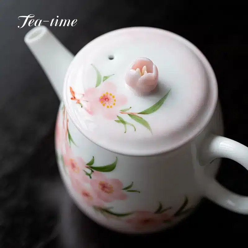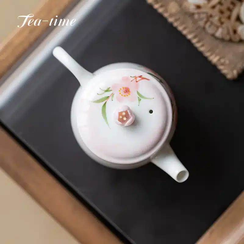 Pure Hand Painted Peach Blossom Tea Pot Kettle Japanese Teapot Porcelain Chhai Filter Handmade Puer Ceramic Pots Supplies Clay